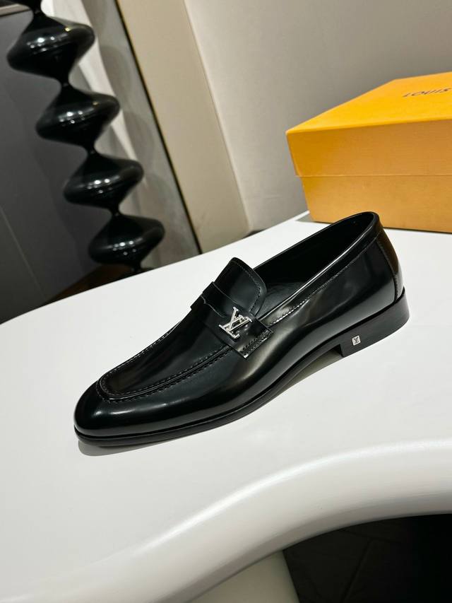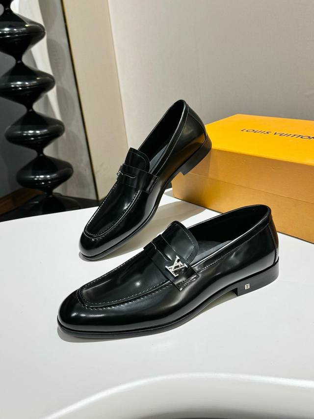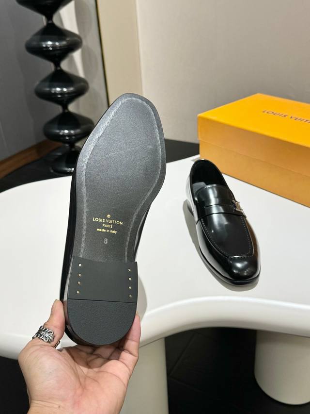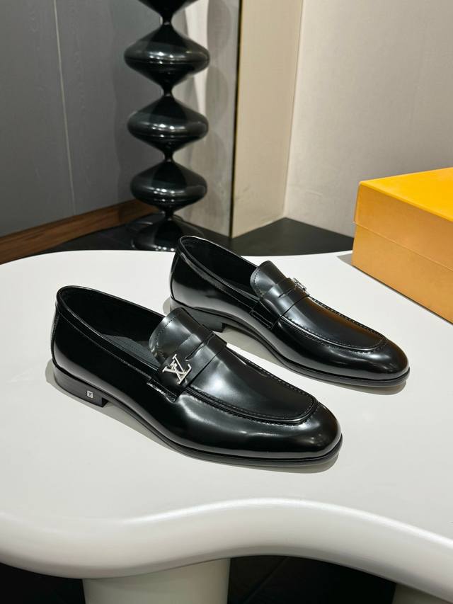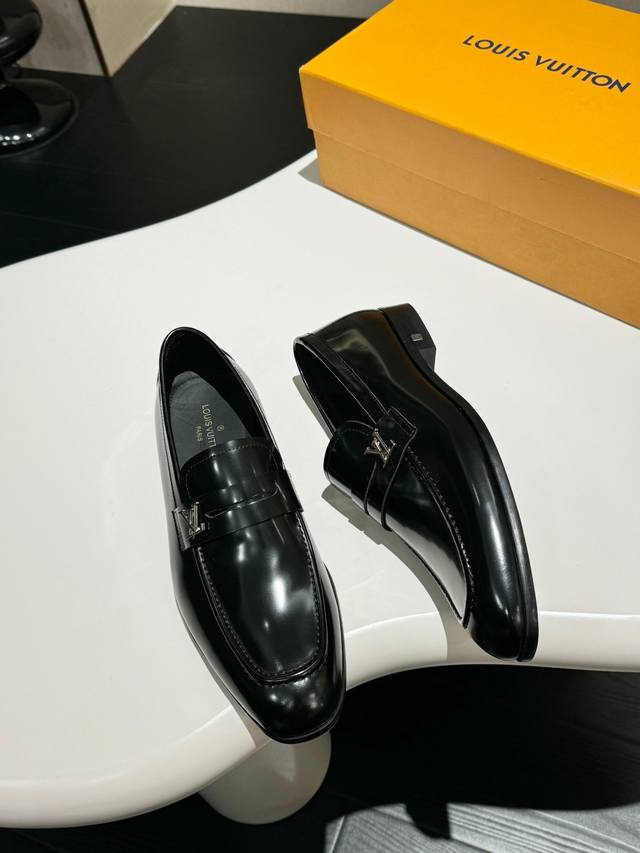 LV~ High-end men's formal and casual leather shoes, classic style, high-end and sophisticated, made of imported cowhide, breathable calfskin lining, genuine leather outsole, top quality! Sizes: 39-44, 38, 45, 46 (custom made).