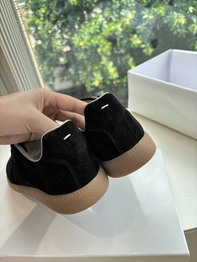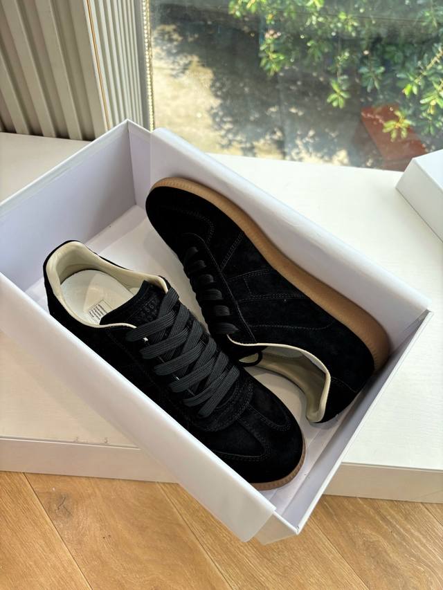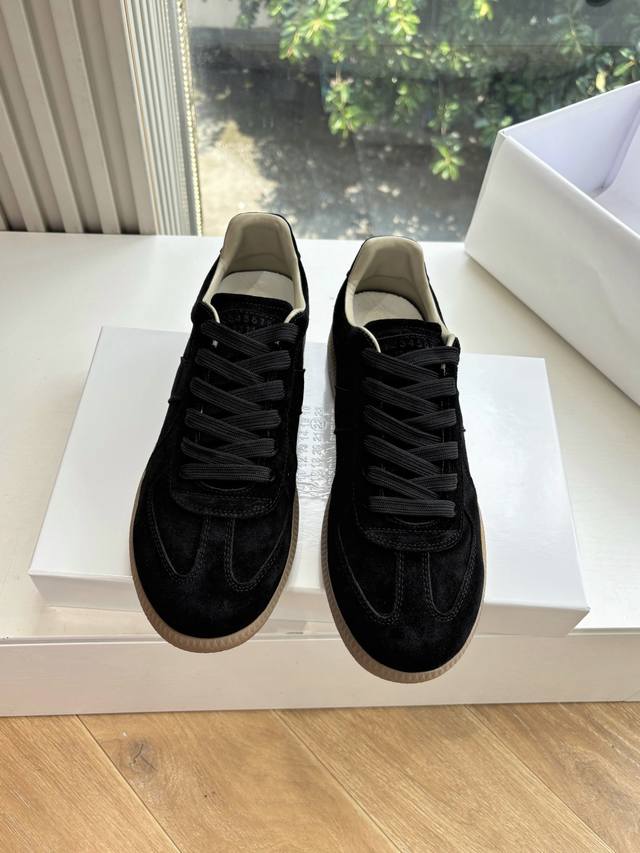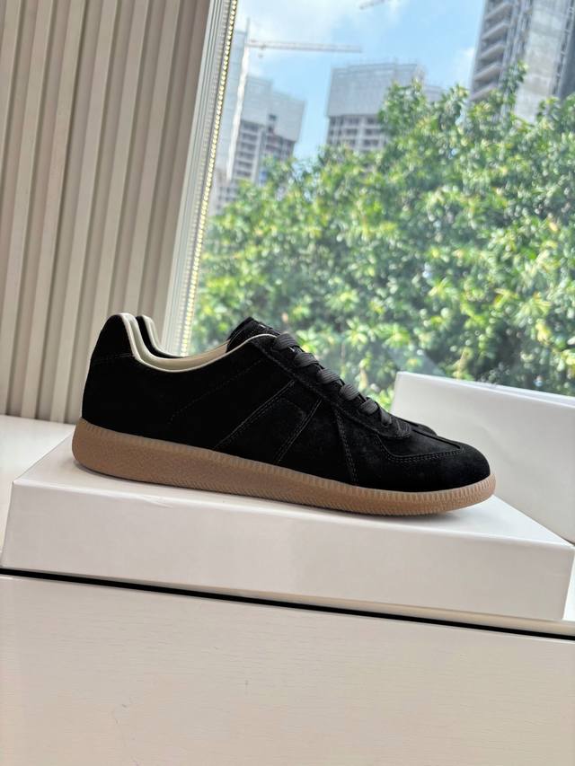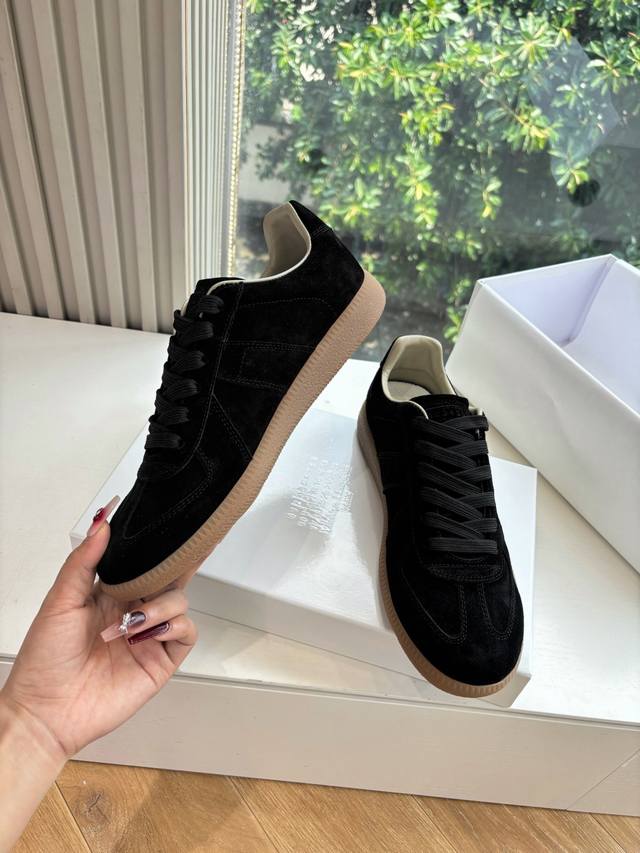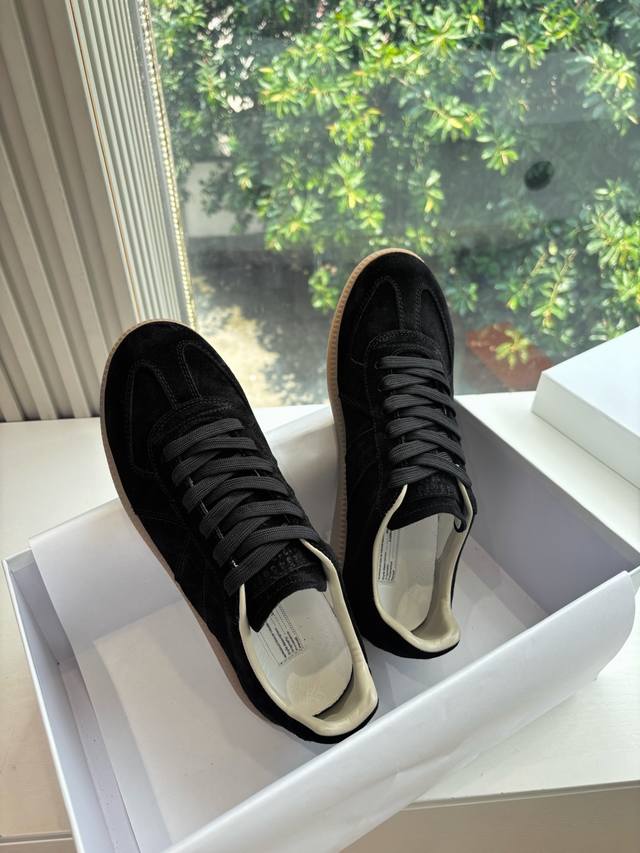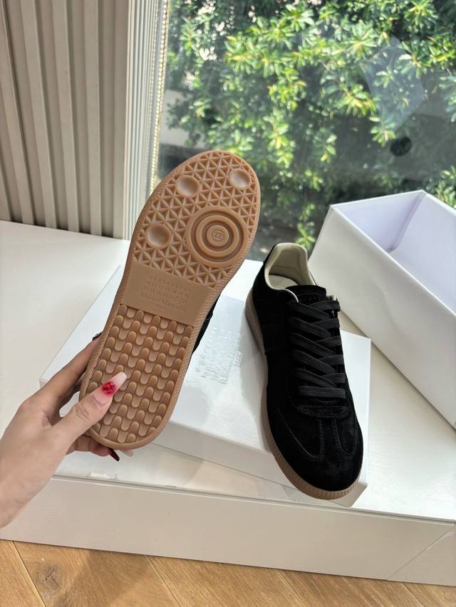 Maisonmargiela Mm6 German training casual shoes, a designer brand known for its innovative designs. A mid-range luxury brand, these shoes are incredibly versatile and comfortable. This German training shoe continues the classic T-shaped genuine leather patchwork design, meticulously refined by the design team to give you the most authentic military feel. The combination of soft, supple top-grain cowhide and the texture of suede provides exceptional softness and comfort while maintaining good breathability. Comfort and quality go hand in hand, easily adaptable to any season and any outfit. Material: Cowhide. Sizes: 35-40 (Women's 39, Men's 45).