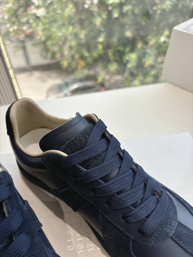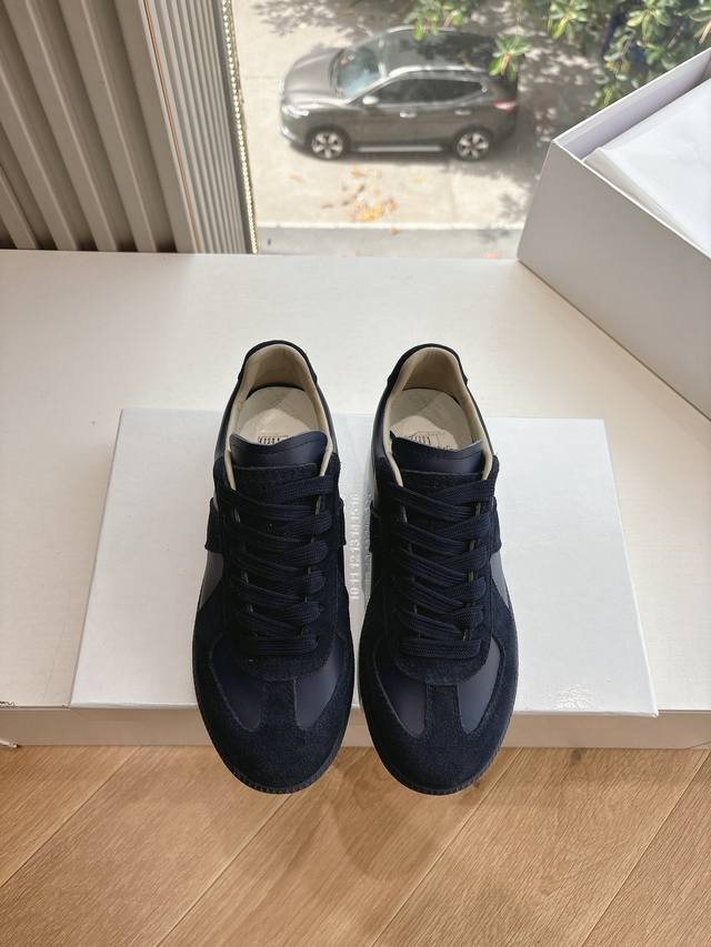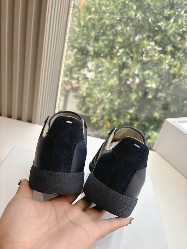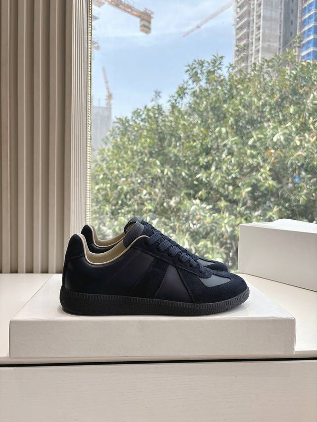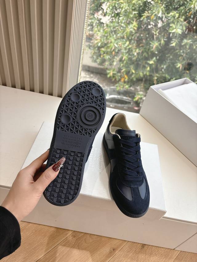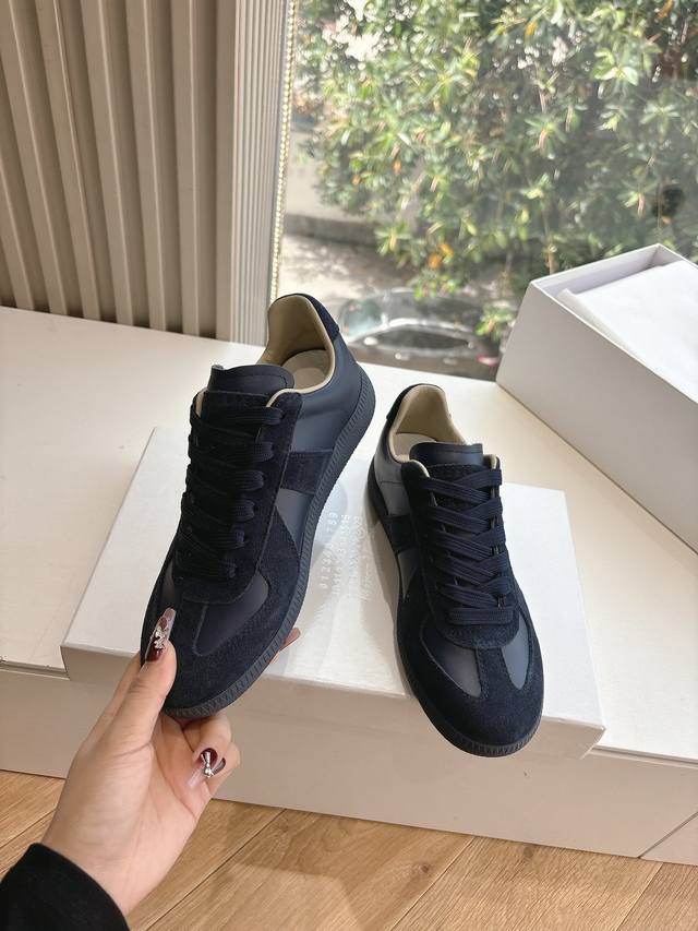 Maisonmargiela Mm6 German training casual shoes, a designer brand known for its innovative designs. A mid-range luxury brand, these shoes are incredibly versatile and comfortable. This German training shoe continues the classic T-shaped genuine leather patchwork design, meticulously refined by the design team to give you the most authentic military feel. The combination of soft, supple top-grain cowhide and the texture of suede provides exceptional softness and comfort while maintaining good breathability. Comfort and quality go hand in hand, easily adaptable to any season and any outfit. Material: Cowhide. Sizes: 35-40 (Women's 39, Men's 45).