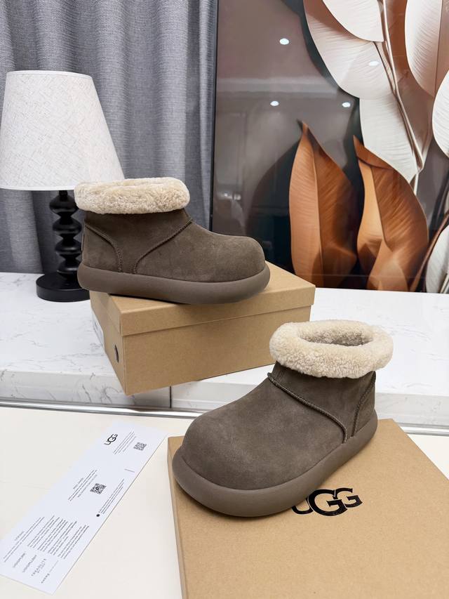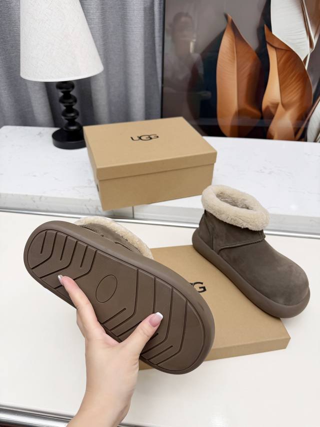 UG25 The latest hot-selling thick-soled mini-wolf boots are a must-have! The epitome of effortless chic, they look incredibly sophisticated on the feet. The fit is super nice and comfortable. A must-have for lazy people! A-grade cow suede upper, 100% pure wool lining, warm, comfortable, stylish, and versatile. Colors: Chestnut, Coffee, Sand, Grey. Sizes: 35-40.