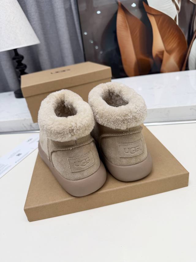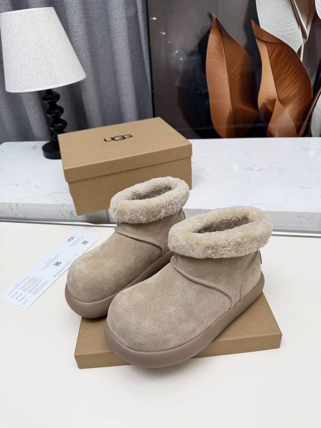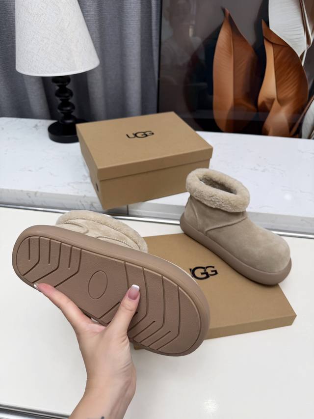 UG25 The latest hot-selling thick-soled mini-wolf boots are a must-have! The epitome of effortless chic, they look incredibly sophisticated on the feet. The fit is super nice and comfortable. A must-have for lazy people! A-grade cow suede upper, 100% pure wool lining, warm, comfortable, stylish, and versatile. Colors: Chestnut, Coffee, Sand, Grey. Sizes: 35-40.