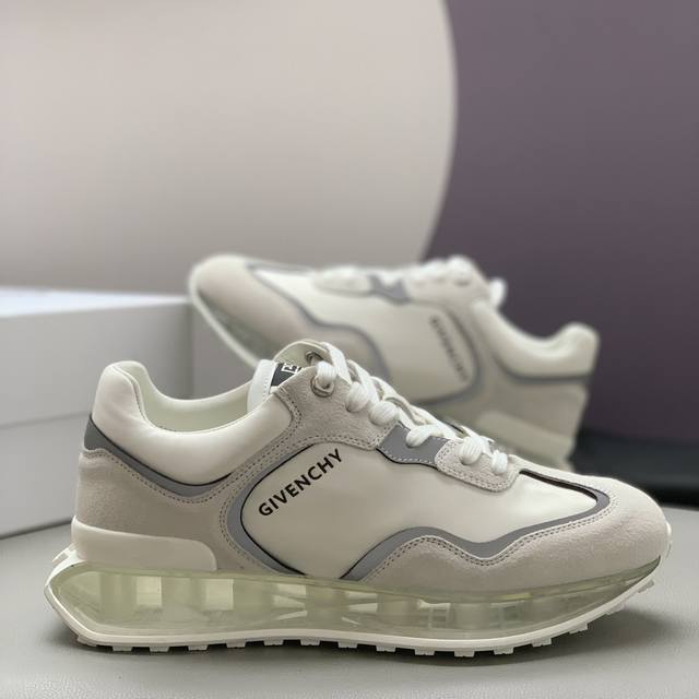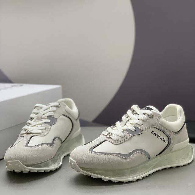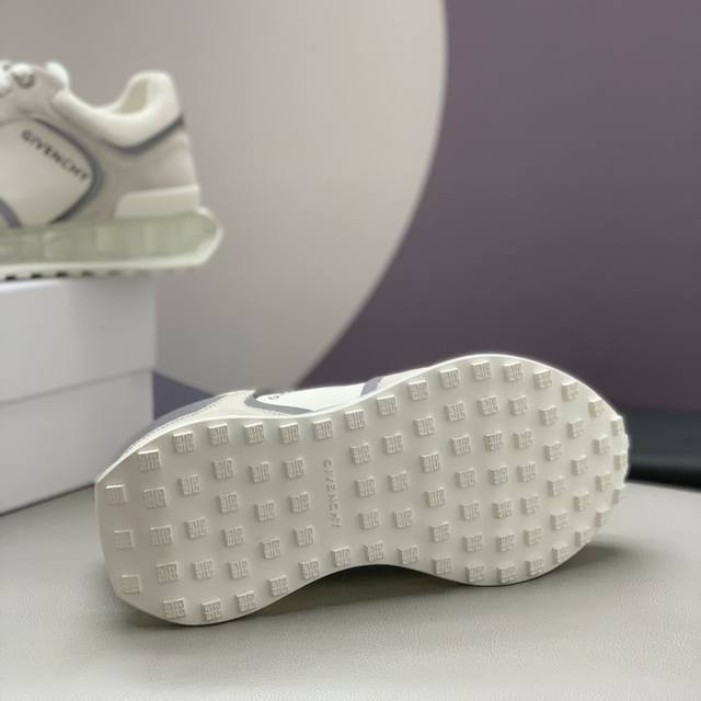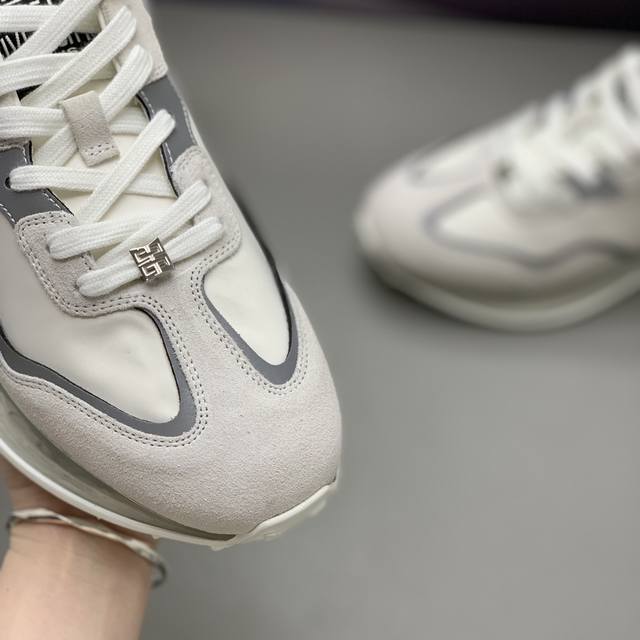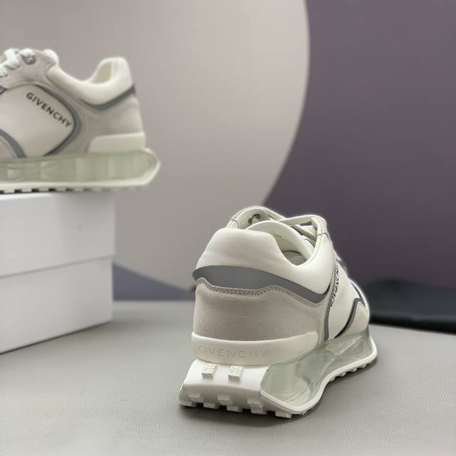 Men's Low-Top Casual Shoes - Made of white perforated leather, featuring a 4G logo on the tongue and a logo lettering print on the side. Retro design, lightweight and transparent upper, and a white tech sole. Sizes: 39-45