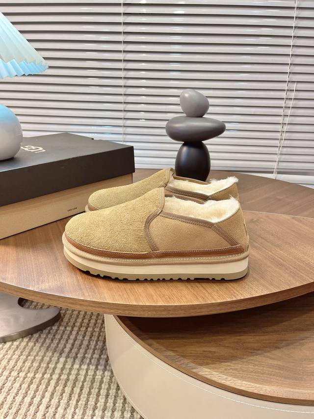 Men's Winter Snow Boots, Furry Shoes, Slip-on Casual Shoes. A versatile and stylish choice that will boost your confidence and style. Upper: High-quality cow suede. Lining: Sheepskin and wool lining. Outsole: Eva non-slip outsole. Sizes 39-45.