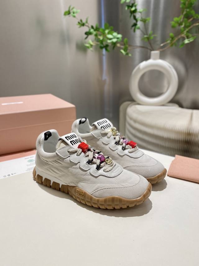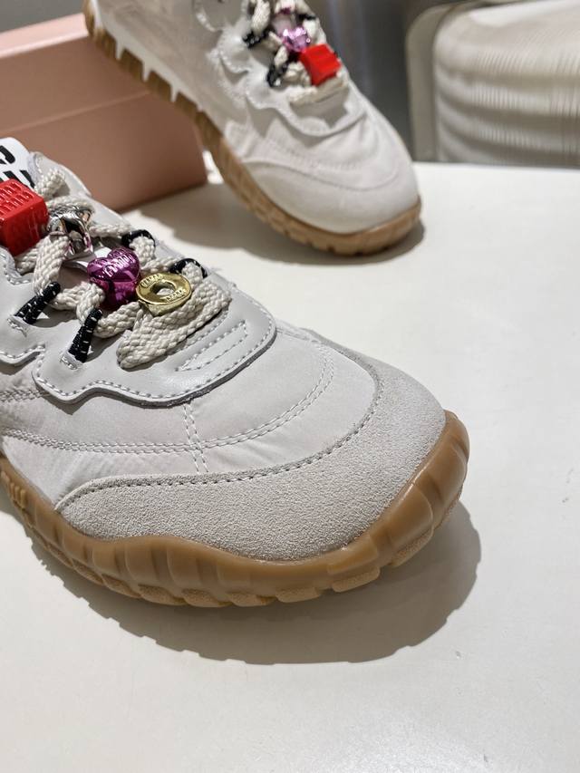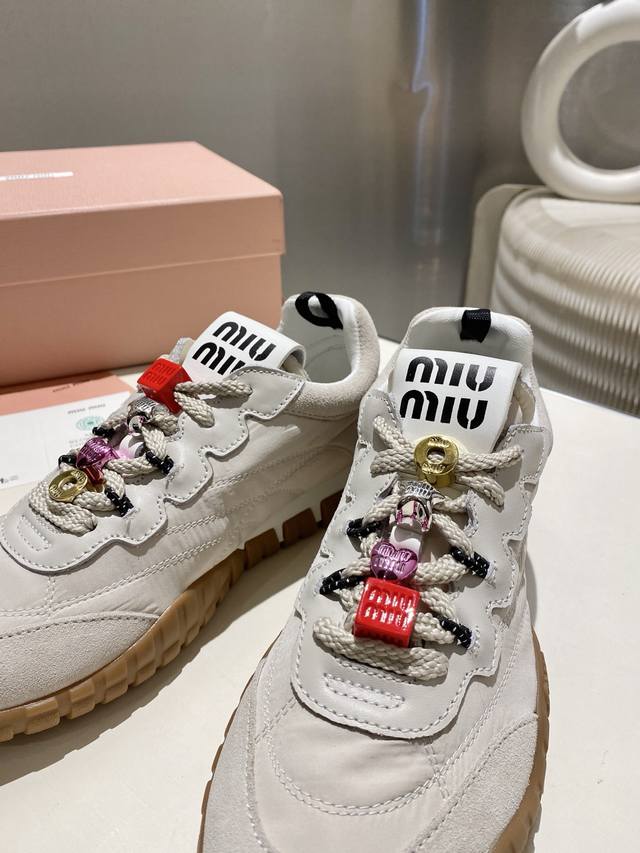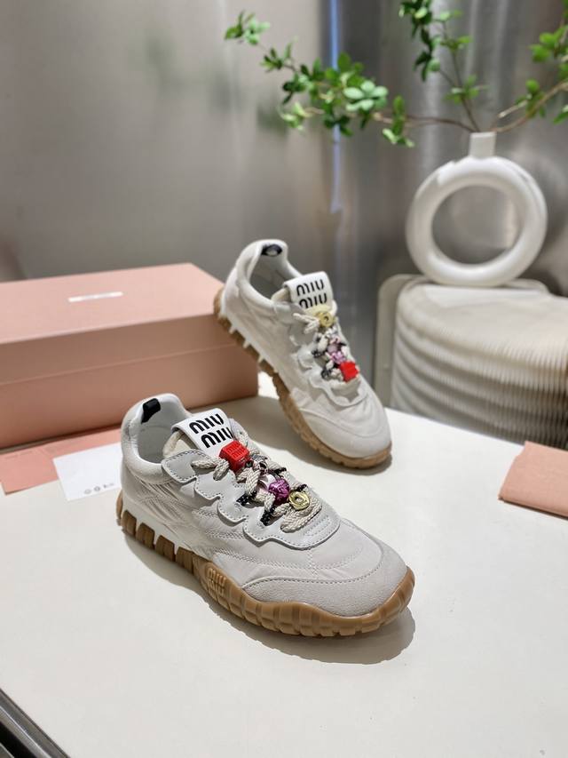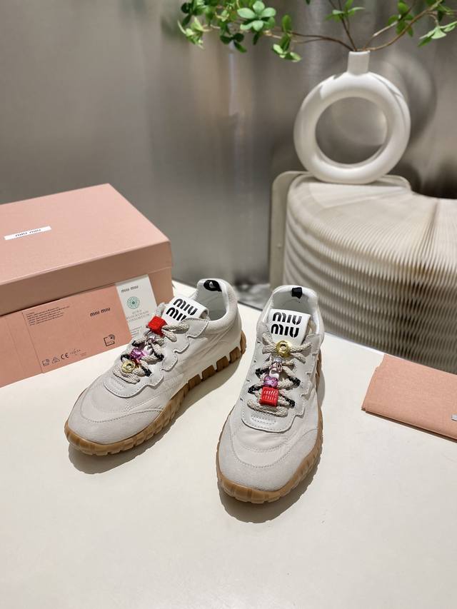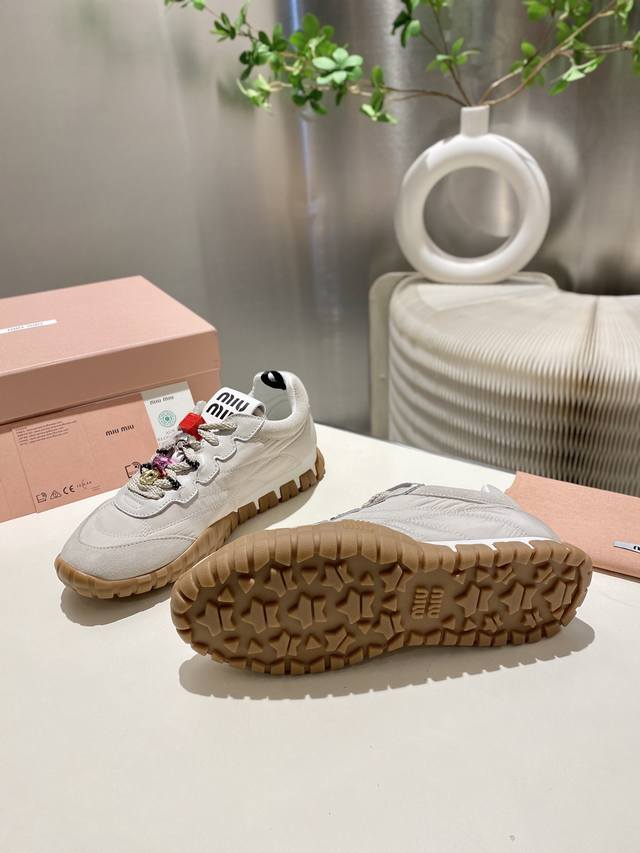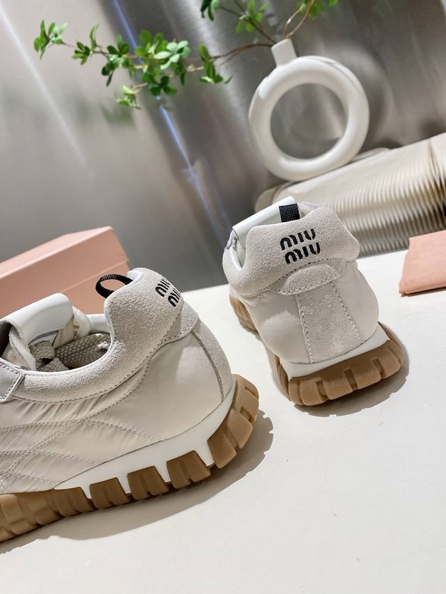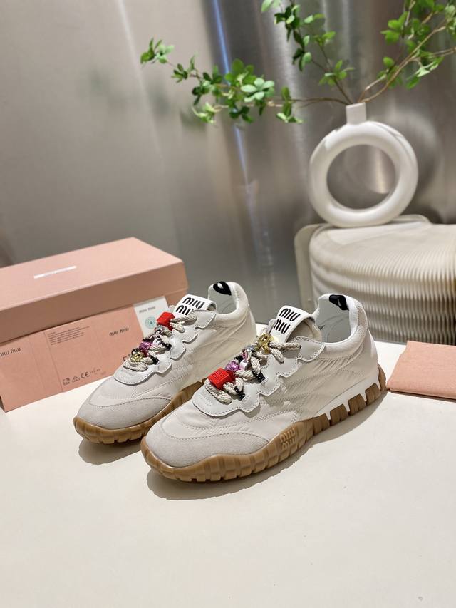 Miu Miu 2025 Forrest Gump Casual Shoes/Sneakers, Spring/Summer New Arrival, Trending Style with a Bold and Avant-garde Design. The Miu style is incorporated into the simple lines of this platform canvas sneaker. Unique logos adorn the tongue and back, adding a touch of retro style. The platform design is bold, innovative, and avant-garde. Comfortable and breathable, the color is also very versatile. Sizes 34-41. 34 & 41 are available for custom orders.