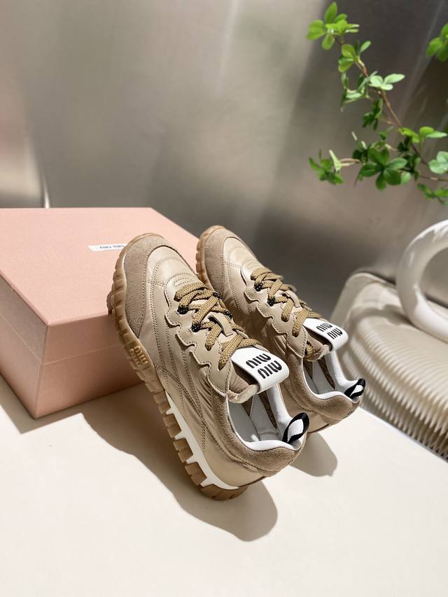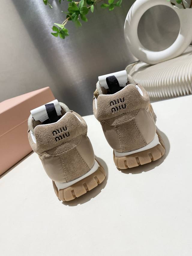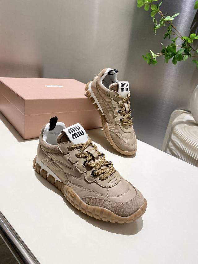 Miu Miu 2025 Forrest Gump Casual Sneakers, Spring/Summer New Arrival, a trendy and bold design. The Miu style is incorporated into the simple lines of this chunky canvas sneaker, with a unique logo adorning the tongue and back, accented by a retro chunky sole design. Bold, innovative, and avant-garde, comfortable and breathable, the color is also very versatile. Sizes 35-41, 40.41 available. Custom made.