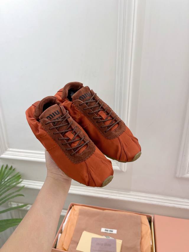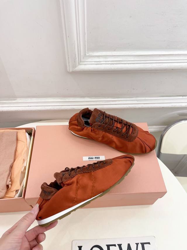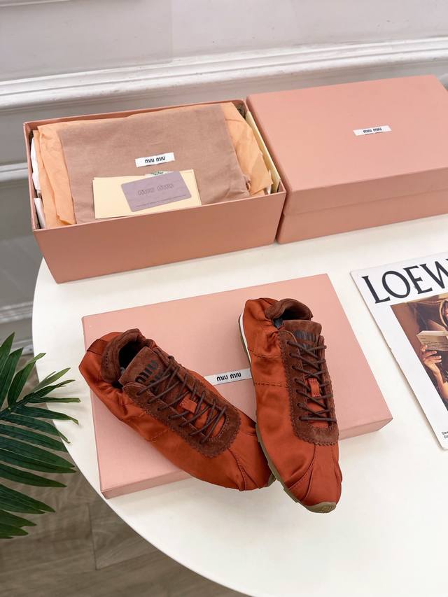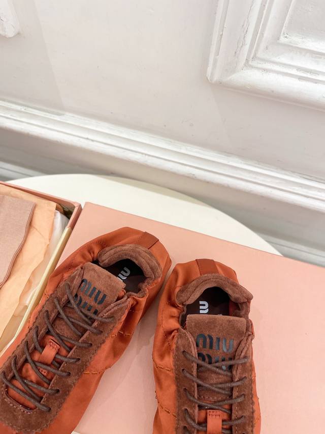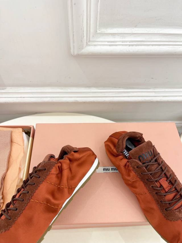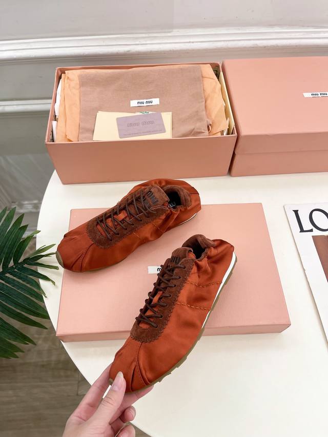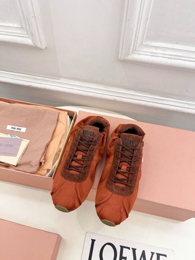 / Miu Miu 25 2025 New Arrival - The Latest Runway Style Plume Satin Ballet Trainin