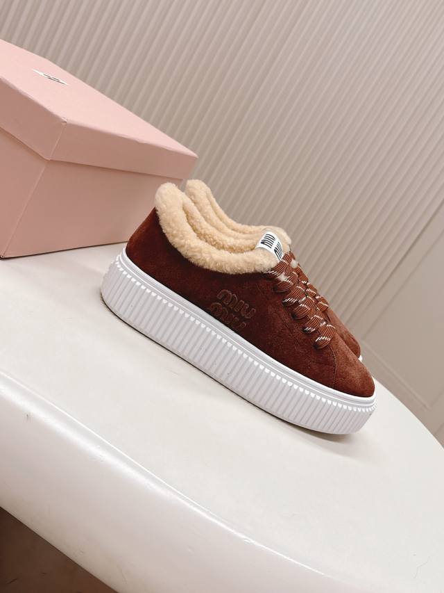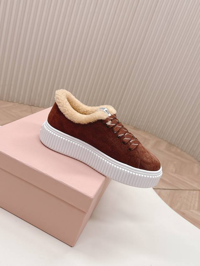 Miumiu 2025 Autumn/Winter New Wool Platform Biscuit Shoes - A classic winter upgrade with added wool for a 4cm height increase. These shoes combine the elegance and lightness of biscuit shoes with the cuteness and warmth of a plush texture, making them both stylish and practical. Upper: Cowhide Lining: Wool Outsole: Original molded non-slip outsole Sizes: 35-40
