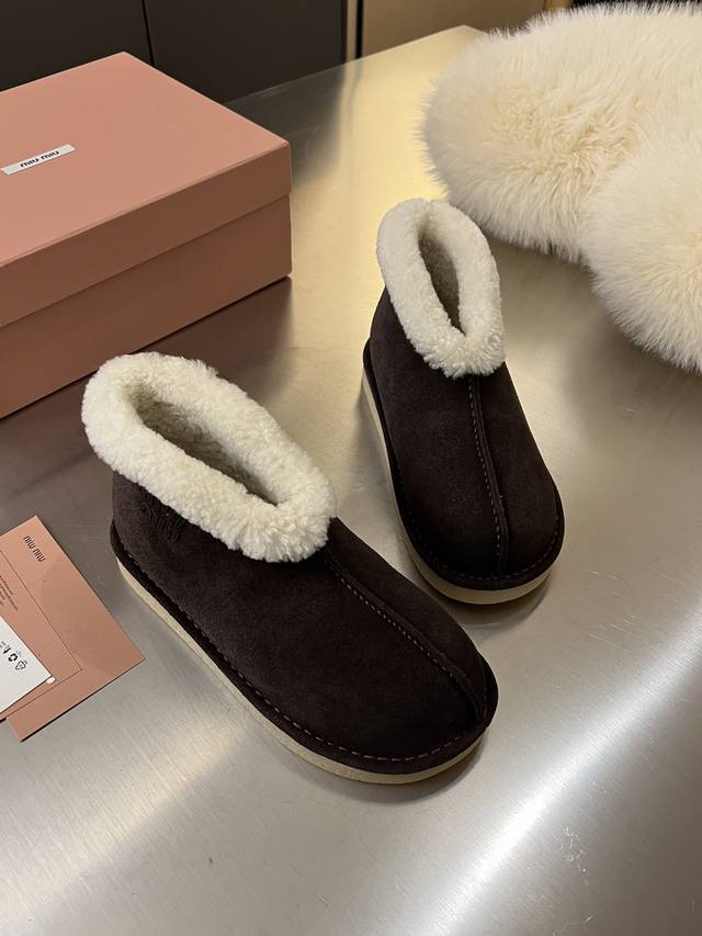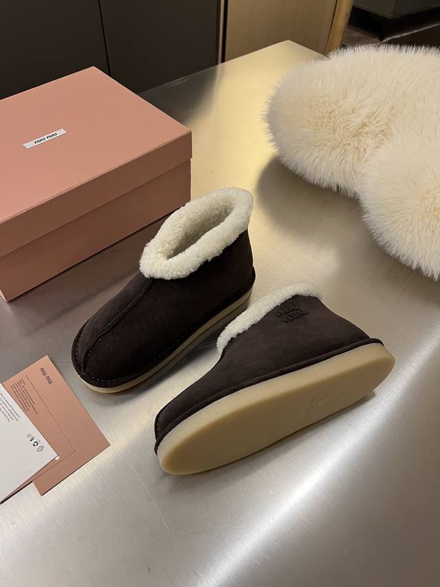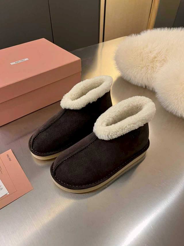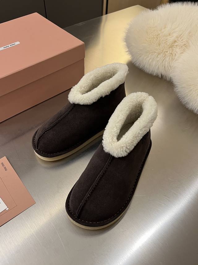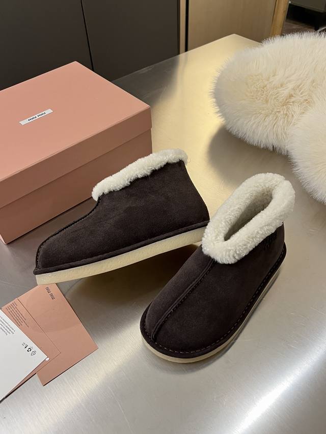 Miumiu 25Ss Fall/Winter Runway Look | High-End Wool Ankle Boots for an Effortless Runway Look | A Must-Have in Fashion Magazines | A Favorite Among Celebrities and Bloggers | Stunning on-foot, a foolproof purchase! | Upper made of silky cow suede for a delicate and luxurious feel | 100% pure wool lining for warmth and comfort | 1:1 replica crystal lightweight outsole for super stability | Perfect for everyday wear or winter commutes | Available in three sophisticated colors: chestnut, sand, and dark brown | Sizes 35-40 available | A versatile must-have for any occasion | Make it the perfect finishing touch to your winter outfits | #MiumiuAlternative #FallWinterMustHaveShoes #NicheDesign