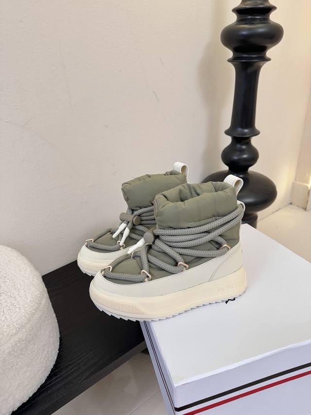 uses a combination of down-like filling and leather, resulting in a unique texture and exquisite craftsmanship. The combination of different materials enhances the shoe's design and improves warmth and durability.
