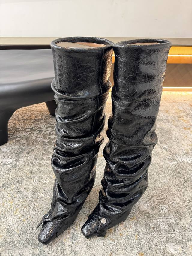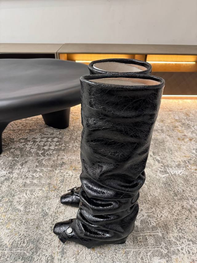 Unfolio Fall/Winter 2025 New Metal Buckle Color-Blocked Slouch Boots These boots