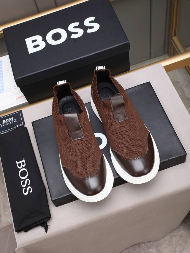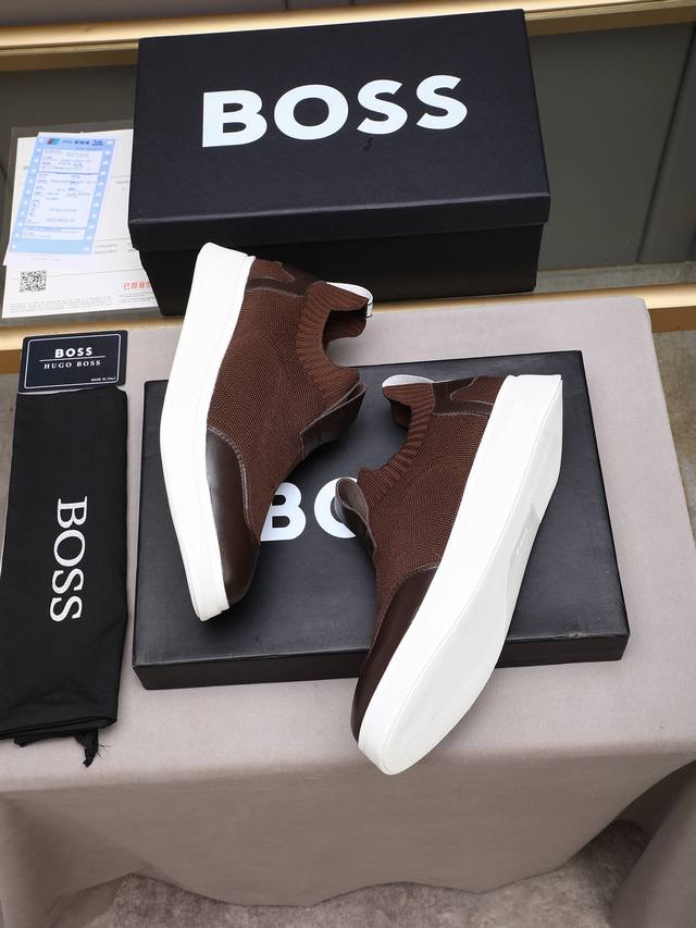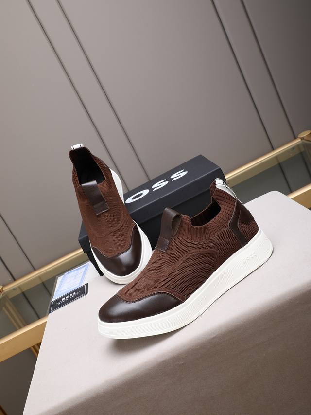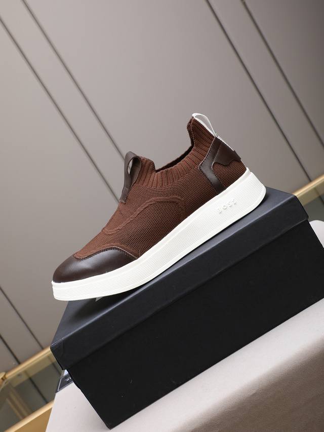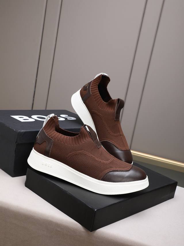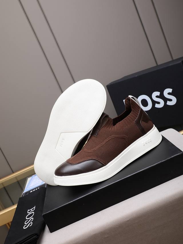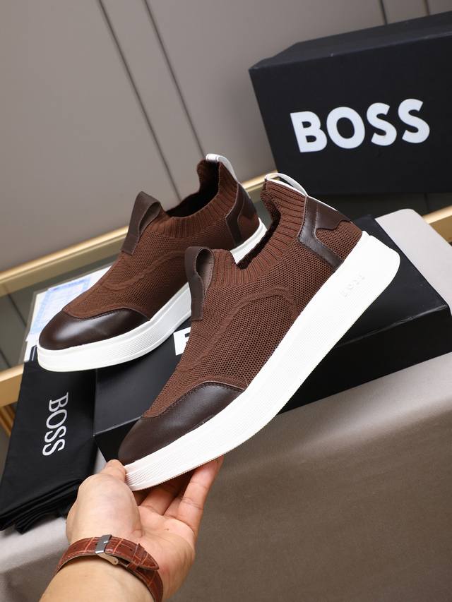 New Boss Men's Slip-on Casual Sports Shoes for Autumn. The upper is made of imported high-elasticity flyknit fabric, breathable and comfortable. Original TPU sole is lightweight and durable! Sizes: 38-44, 45. Custom orders available.