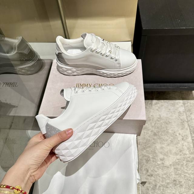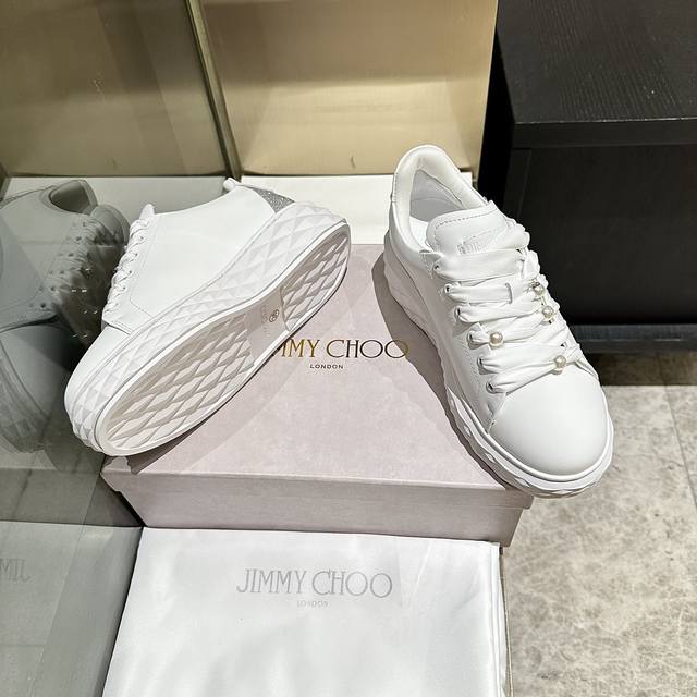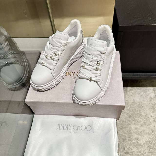 New Jimmy Choo sneakers, exclusively released. Original design with a classic white outsole, featuring the latest craftsmanship and a strong three-dimensional effect. A fusion of multiple techniques creates a revolutionary and incredibly stylish look! Perfect for any outfit. The original 1:1 pearl design is both beautiful and unique. Versatile and trendy, suitable for both casual and edgy styles! New version. Sizes: 35-40.