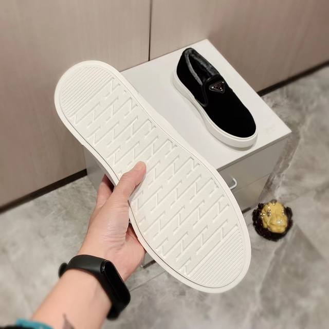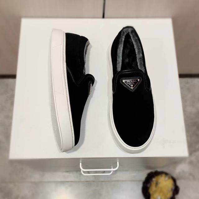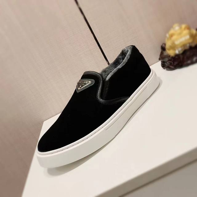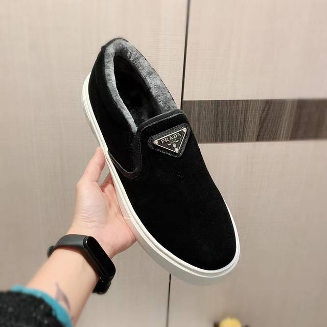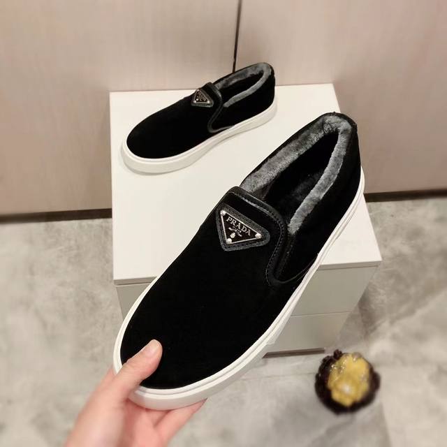 New Maoli Style: Factory direct, 1:1 replica of the original Prado* official website's latest popular casual shoes, 1:1 replica of the boutique style. Top-tier luxury brand, top-quality. The upper is made of imported breathable suede, warm and durable, with a finely crafted wool lining. Original design, stylish and soft rubber outsole, lightweight and comfortable. Actual product photos show even better in person. Size 266 (Guangzhou): 38-44. Black.