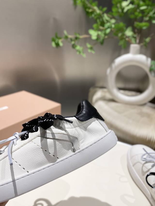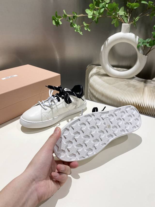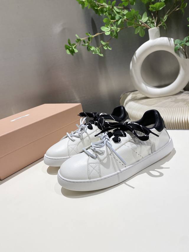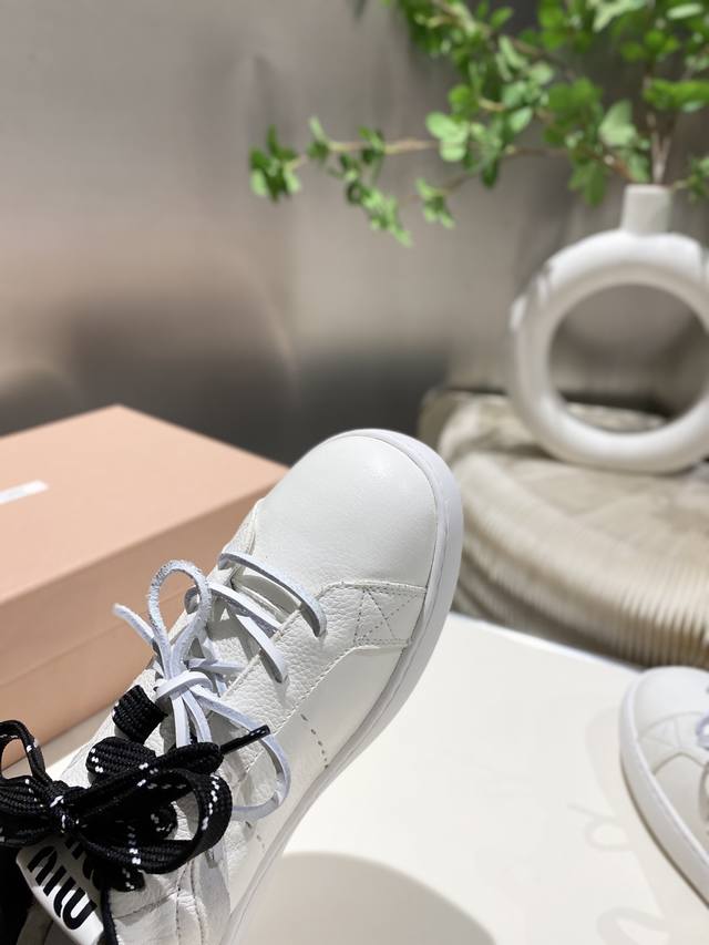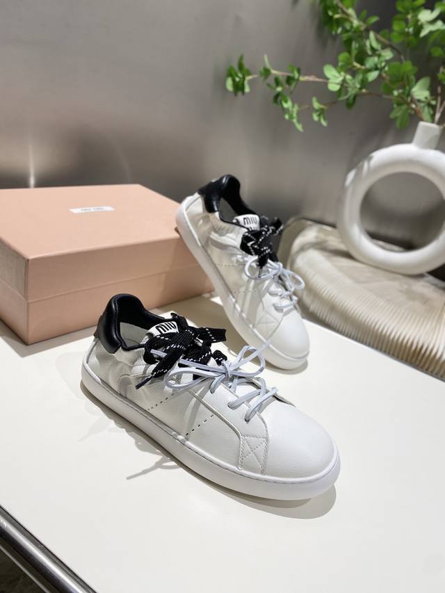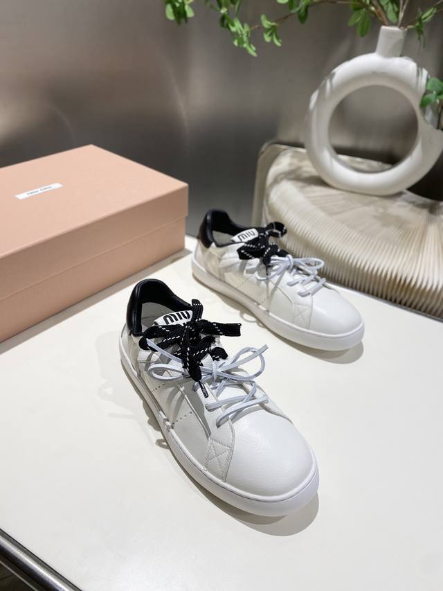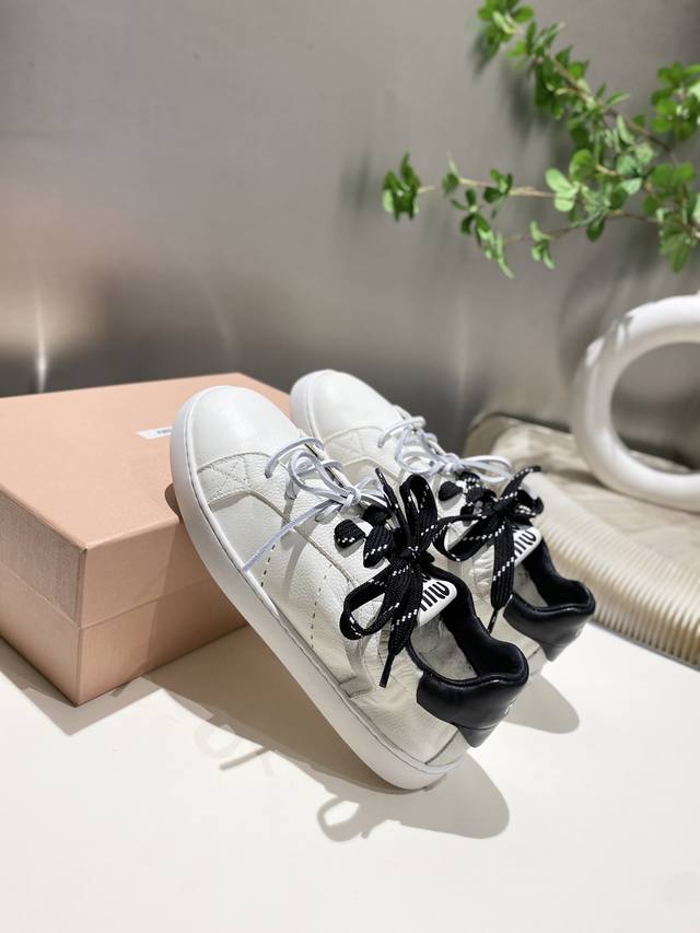 New Miu Miu 2025 Spring/Summer Casual White Sneakers are now available! A key style recommended by the official website, these sneakers feature a simple plaid design and a distinctive tongue. They exude a youthful and sunny vibe, easily paired with long skirts, short skirts, or shorts for a unique style. Features include a super lightweight IP foam sole, top-layer cowhide lining, and a 1:1 replica of the original material with a distressed finish. Sizes 35-39, 34-40, and 41 are available. No returns or exchanges.