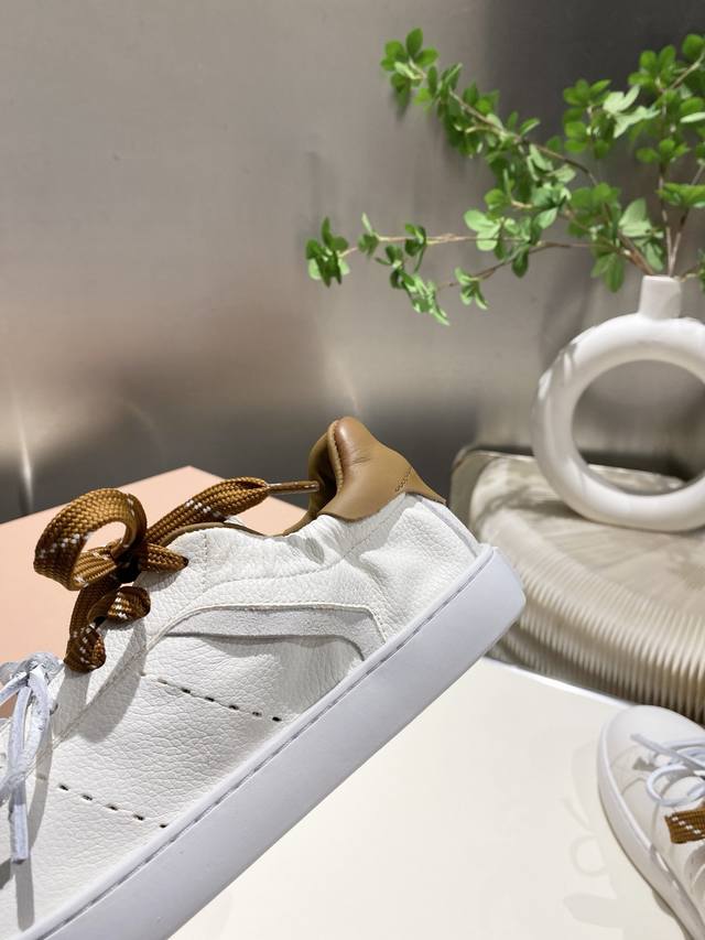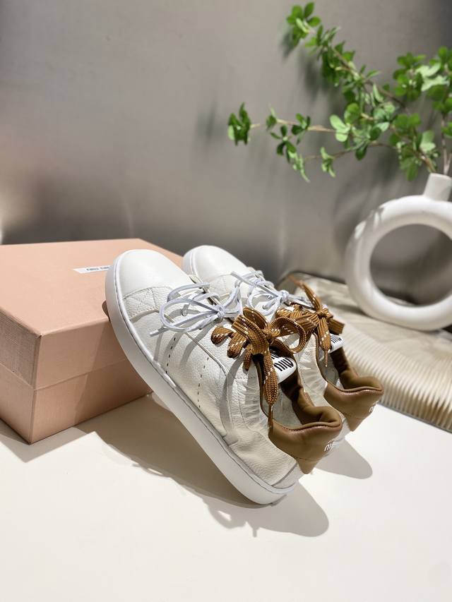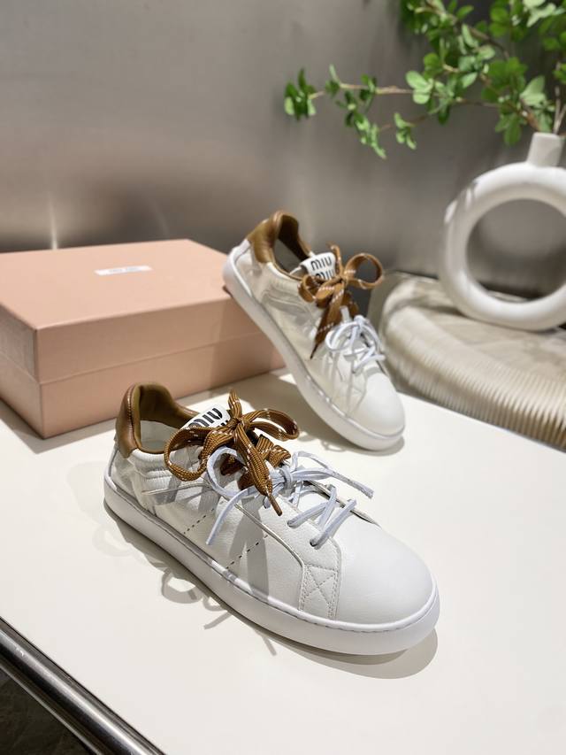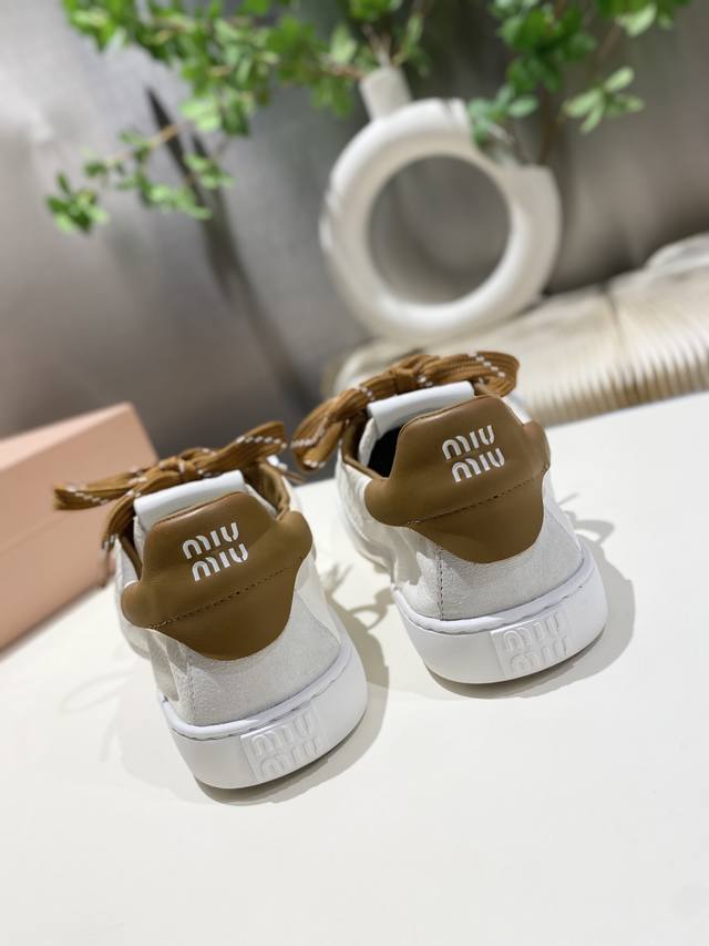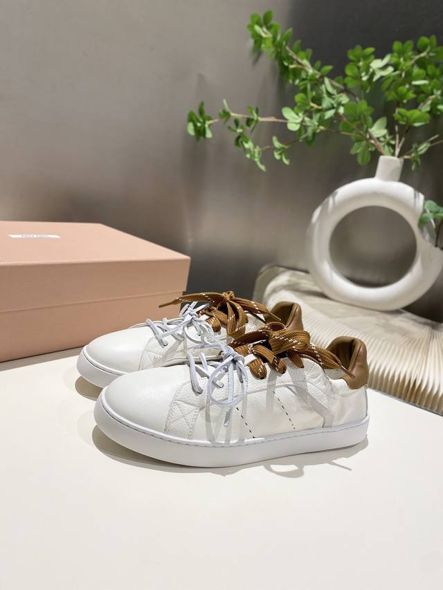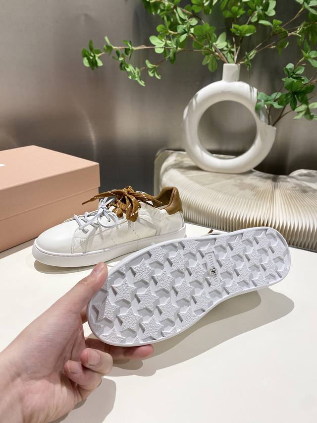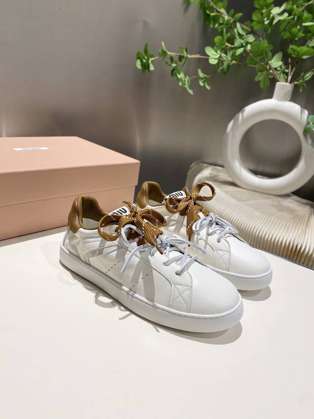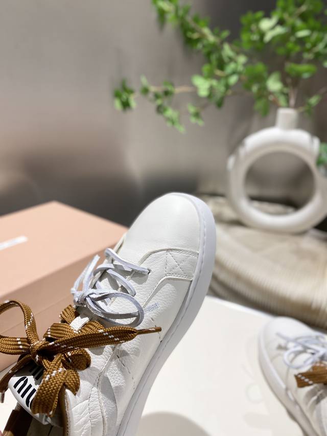 New Miu Miu 2025 Spring/Summer Casual White Sneakers are now available! A key style recommended by the official website, these sneakers feature a simple plaid design and a distinctive tongue. They exude a youthful and sunny vibe, easily paired with long skirts, short skirts, or shorts for a unique style. Features include a super lightweight IP foam sole, top-layer cowhide lining, and a 1:1 replica of the original material with a distressed finish. Sizes 35-39, 34-40 , and 41 are available. No returns or exchanges.