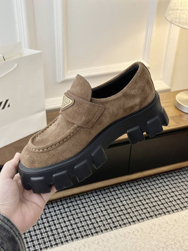 New Platform Loafers Ddd New style loafers with 5.5cm heel! Made with more textured pebbled leather, the heel is higher but the overall weight remains extremely light. So versatile! Perfect for any outfit, from edgy to sweet, wear with various skirts and shorts, and look amazing with socks! Ddd Upper Material: Cowhide suede with open-edge beaded leather Ddd Lining Material: Cowhide Ddd Sole Material: Original rubber combination sole 5.5cm Ddd Size Selection: Women's 35-40, 40 custom sizes Ddd