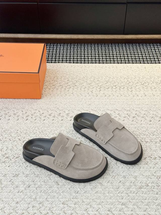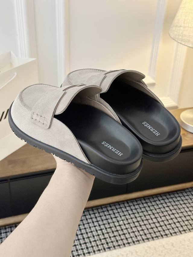 New Spring/Summer Suede Birkenstock Slippers. This year's hottest Birkenstock shoes are from Ddd. For those with wide feet (M), this is definitely a must-have. Made of suede, they have a perfect casual feel and are incredibly comfortable. They don't feel heavy, don't rub, and even add height. A very youthful and Japanese-style oversized shoe, they go with everything and are expected to be a frequently worn pair. They look simple yet are undeniably cute. Upper Material: Deerhide; Lining Material: Leather; Sole Material: Original Rubber; Sizes: Women's 35-40, Men's 39-44, Women's 40, Men's 44. Custom orders, no returns or exchanges. Factory direct.