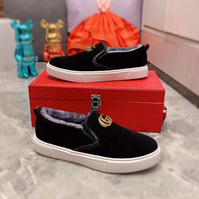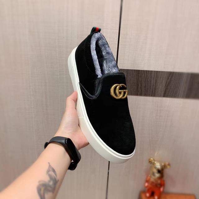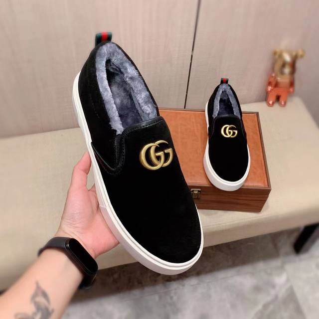 New Style with Fleece Lining: Factory Price G-Class* Latest Hot-Selling Casual Shoes, Top Brand Luxury ~ Imported, Top Quality. Same product sold in department stores. The upper is made of imported breathable suede paired with a breathable fleece lining with exquisite workmanship. Original design, stylish and soft rubber outsole, wear-resistant and non-slip, lightweight and comfortable on the foot. Actual product photos show even better. Size 266 (Guangzhou): 38-44. Black. (DDD)