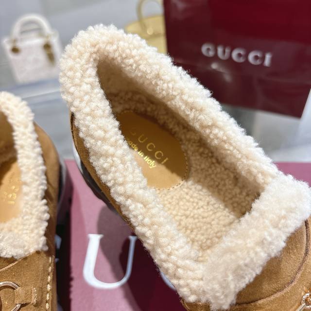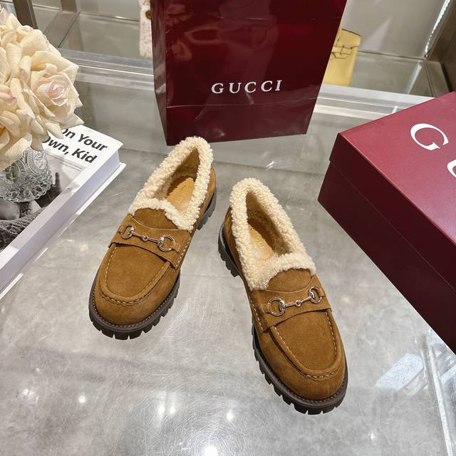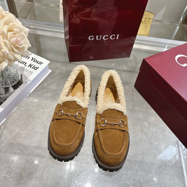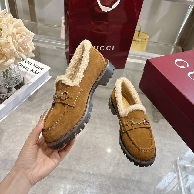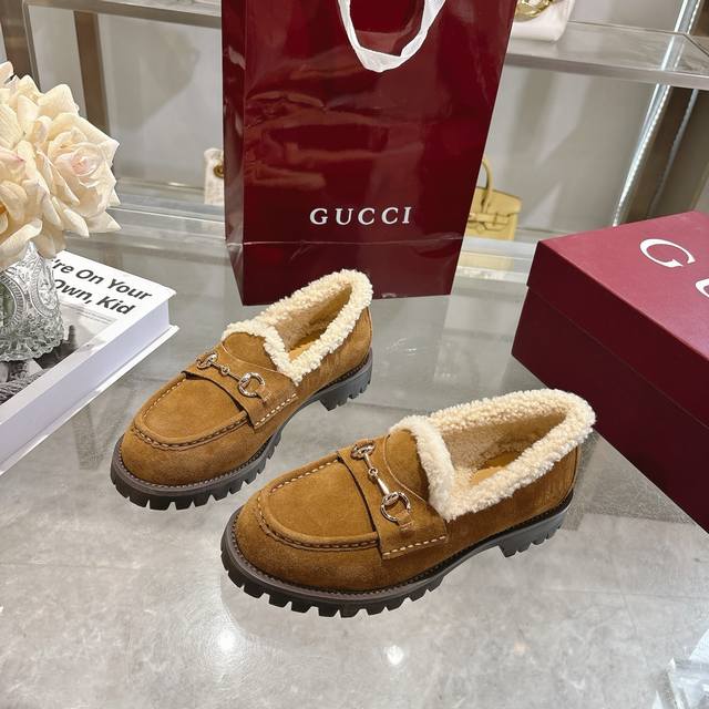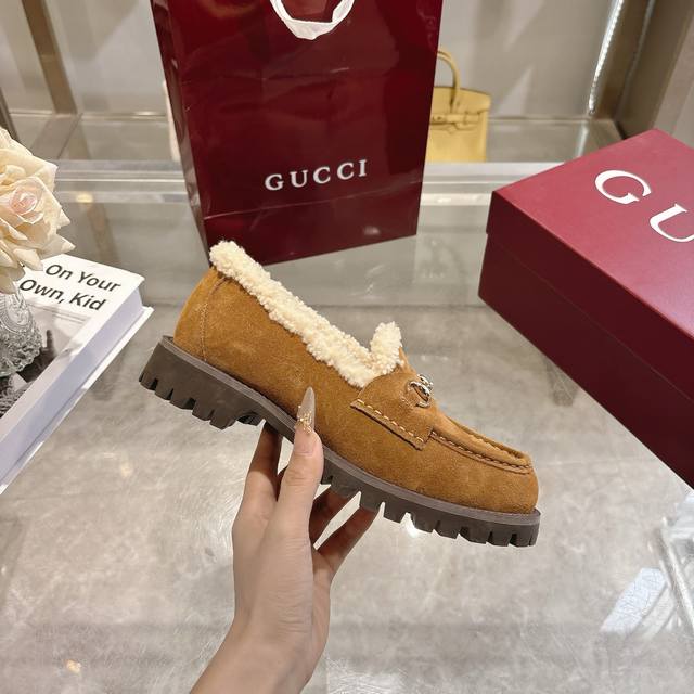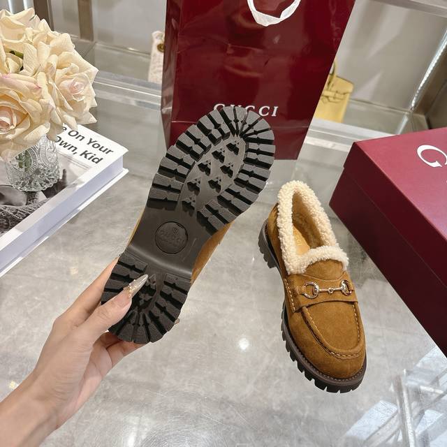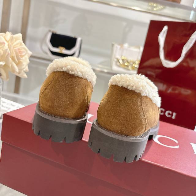 New Winter Women's Horsebit Loafers with Wool Lining DDD Exquisite details infuse these loafers with elegance. Made with smooth suede and a merino wool lining, they exude a refined style. The light gold horsebit adds a touch of brand identity to this classic yet modern design. DDD Brown suede material DDD Light gold hardware DDD Merino wool lining DDD Horsebit DDD Rubber grooved sole DDD Flat sole DDD Height: 3 cm DDD Italian design DDD Sizes: 36-42 DDD