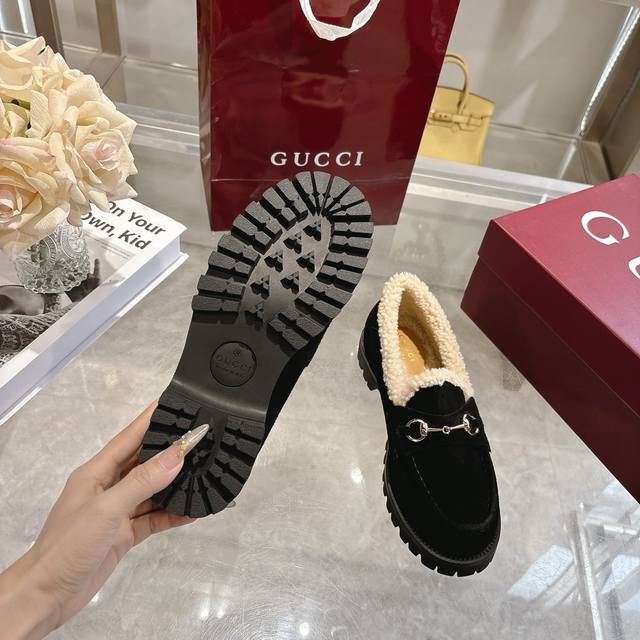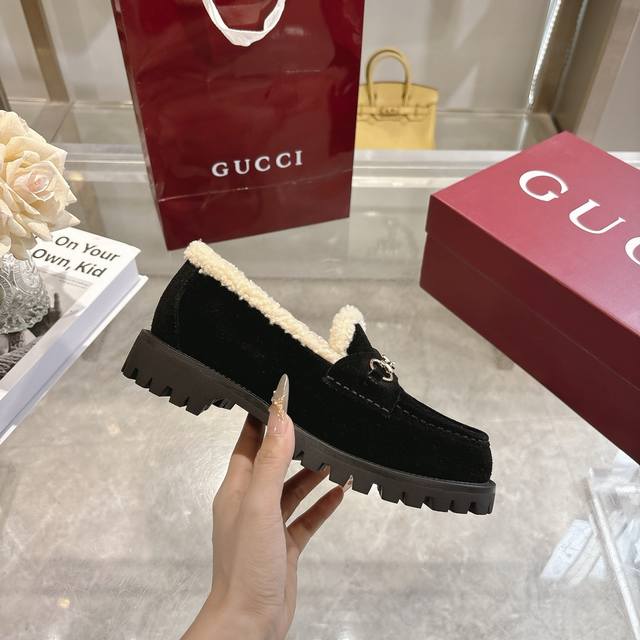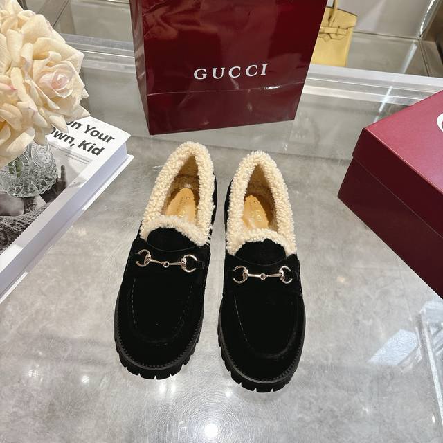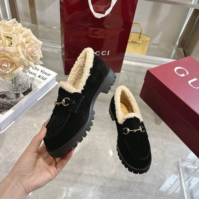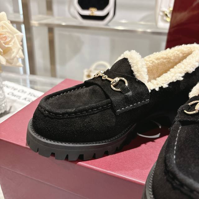 New Winter Women's Horsebit Loafers with Wool Lining DDD Exquisite details infuse these loafers with elegance. Made with smooth suede and a merino wool lining, they exude a refined style. The light gold horsebit adds a touch of brand identity to this classic yet modern design. DDD Black suede material DDD Light gold hardware DDD Merino wool lining DDD Horsebit DDD Rubber grooved sole DDD Flat sole DDD Height: 3 cm DDD Italian design DDD Sizes: 36-42 DDD