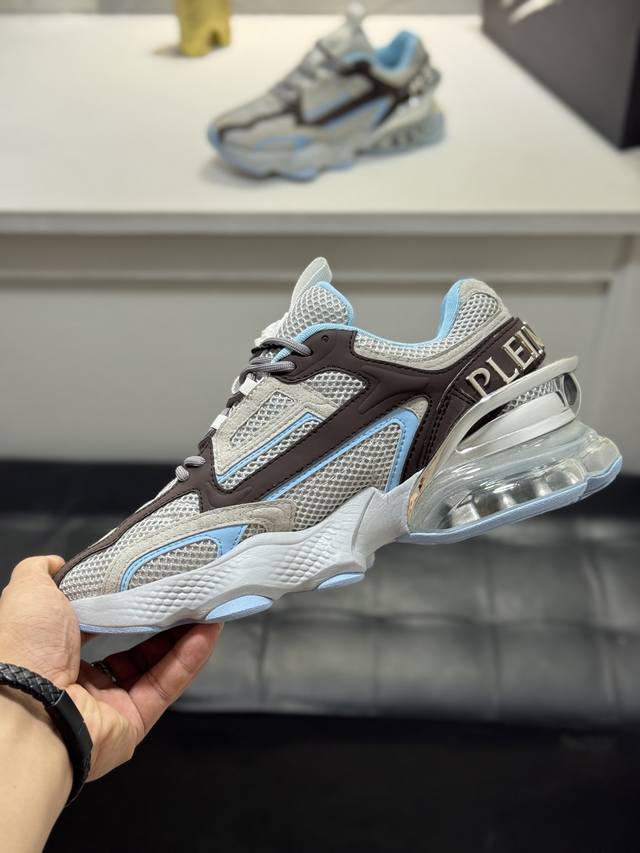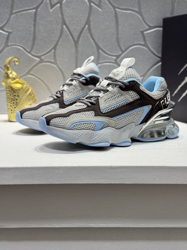 . A hot-selling Philipp Plein model is here! Exclusive models are in stock! New models are available on the official Philipp Plein website in Germany. Perfectly designed, they feature a top-quality air cushion combination, a durable rubber outsole with cowhide stitching, and a mesh lining. The shoe has a full, three-dimensional shape and a genuine, high-quality, versatile design. High-end yet stylish, they're a true star!