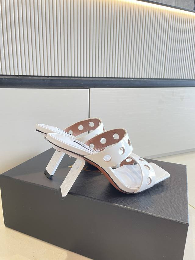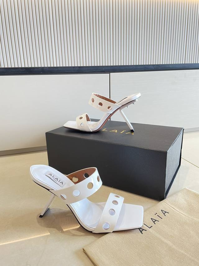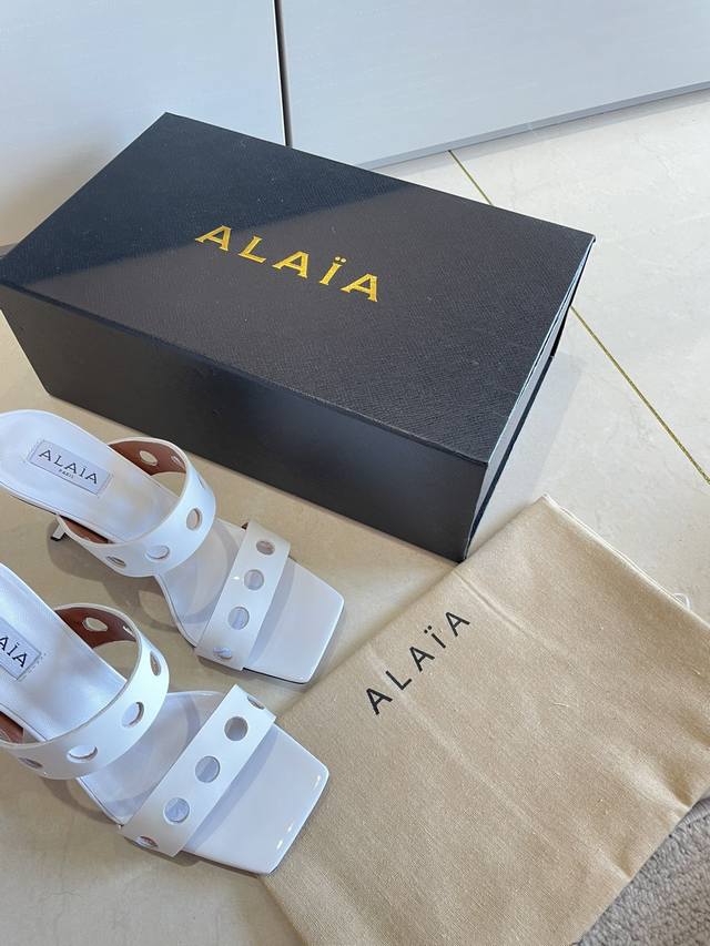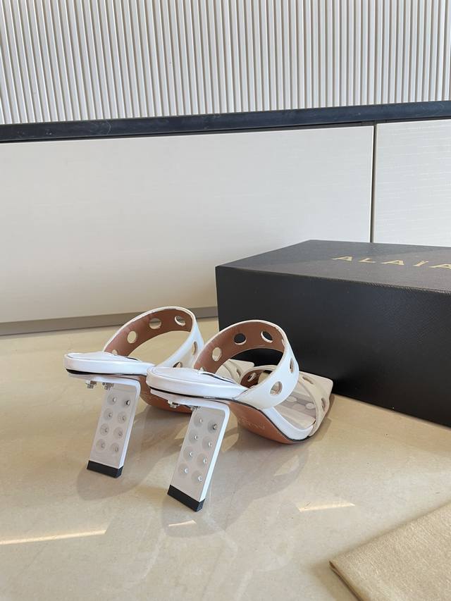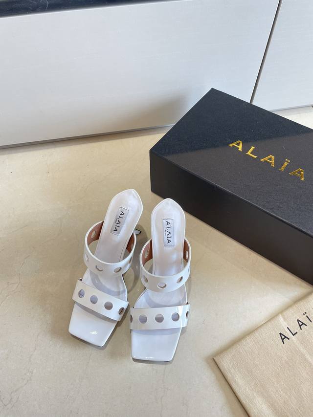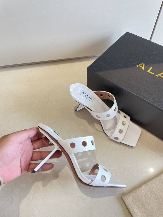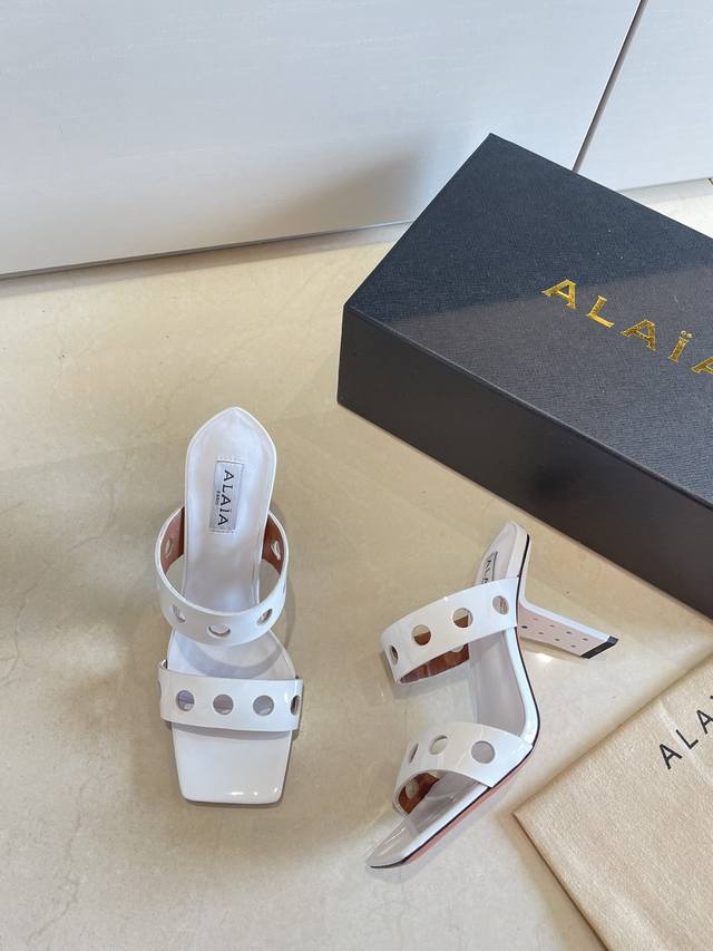 Piano Lacquer Geometric Heel Alaia Hollow-Out Slip-On Slippers from Paris - Love at First Sight! DDD White calfskin patent leather DDD Stainless steel geometric heel DDD Alaia also has another sexy side DDD Easily paired with different styles and looks, whether it's jeans, suit pants, or a pleated skirt, it can elevate your outfit to a fashionable, elegant, and outstanding level DDD Made of calfskin patent leather with sexy transparent film DDD Lambskin lining DDD Genuine leather outsole consistent with the original DDD Sizes 34 35 36 37 38 39 40 41 34 40 41 Customized DDD Comes with original packaging DDD