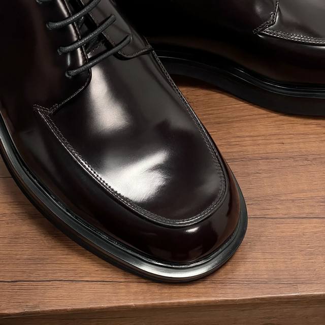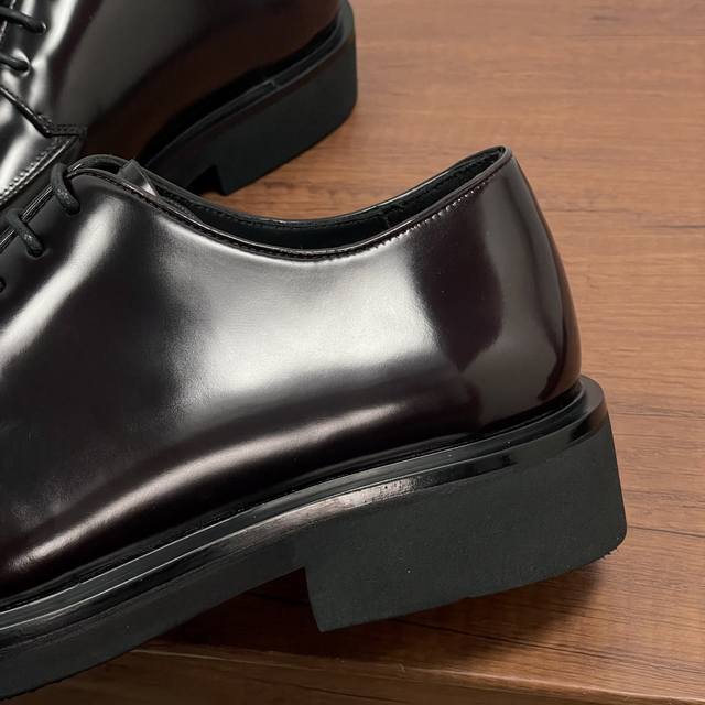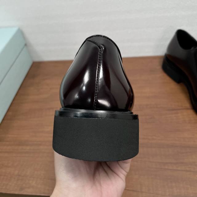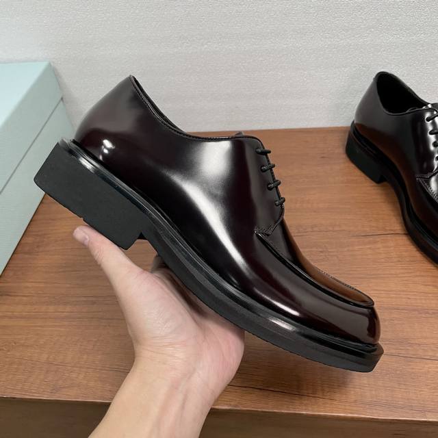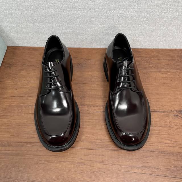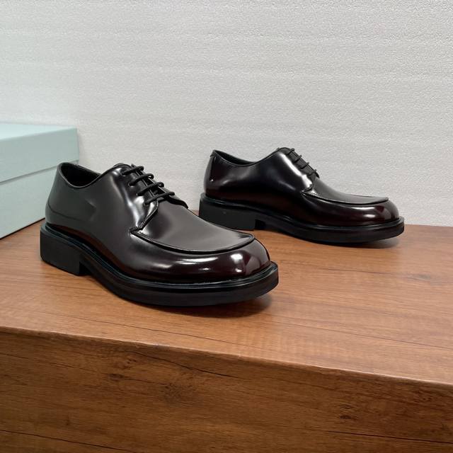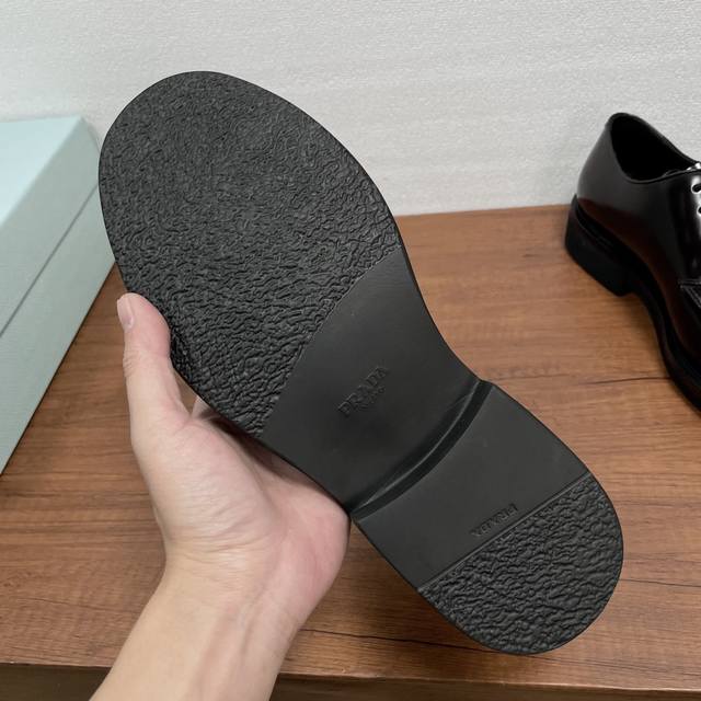 Prada Men's New Leather Lace-up Derby Shoes Ddd These derby shoes exude elegance and modern style. Crafted from black calfskin and glossy, hand-brushed split-edge leather, they feature imported lathes with meticulous stitching, a lace-up derby design, a genuine leather welt combined with a vulcanized, non-slip, durable, and lightweight EVA foam outsole, and a full calfskin insole with a gold-stamped logo, showcasing masculine charm. Classic and stylish, comfortable and durable! Comes with original box and dust bag! Ddd Sizes: 39-40-41-42-43-44 Standard leather shoe size 38-45 Custom orders are non-refundable Ddd Item No.: Xy131 Lace-up Brown Split-edge Bead DDD