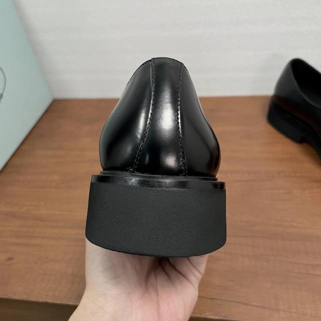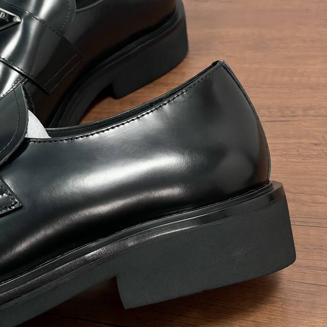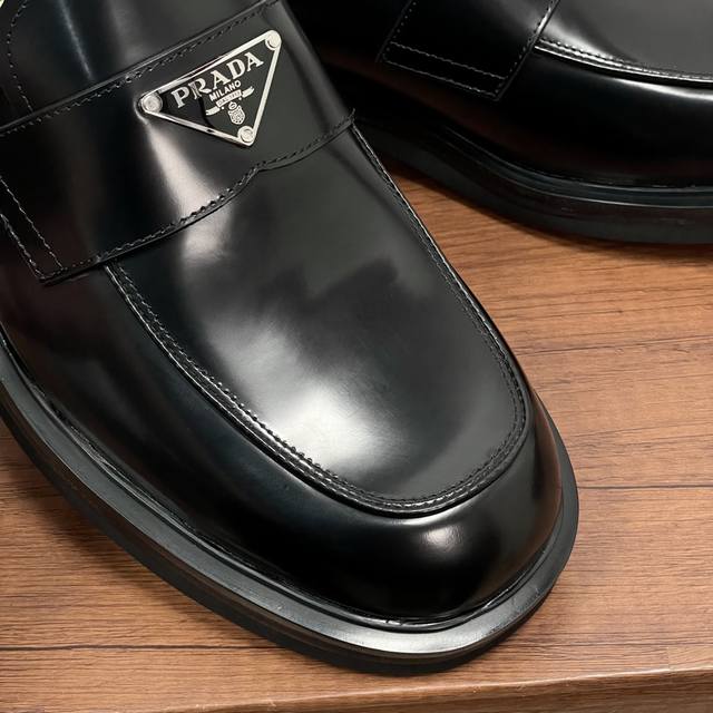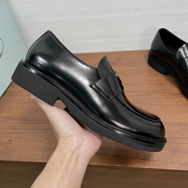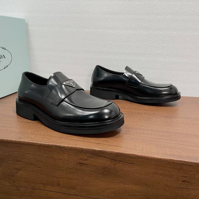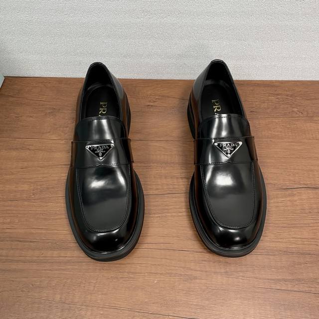Prada Men's New Leather Loafers Ddd These loafers exude elegance and modern style. Crafted from black calfskin and glossy, hand-brushed split-bead leather, they feature the iconic triangular metal enamel logo detail on the front horizontal trim, imported lathe-style stitching, a slip-on design, and a combination of genuine leather welt, vulcanized, non-slip, durable, and lightweight EVA foam outsole. The full calfskin and gold-stamped logo leather insole further enhance masculine charm. Classic and stylish, comfortable and durable! Comes with original box and dust bag! Ddd Sizes: 39-40-41-42-43-44 Standard leather shoe size 38-45 Custom orders are non-refundable Ddd Item Number: Xy131 Triangular Logo Black Split-Bead Ddd