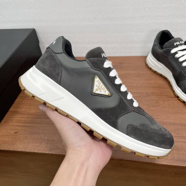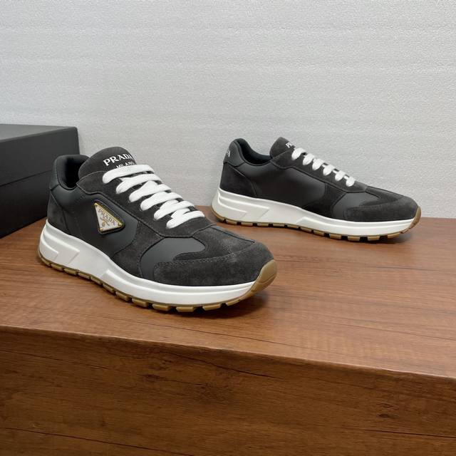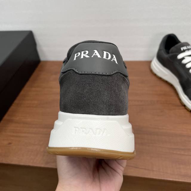Prada Prax Men's Casual Sneakers (Ddd) These Prax sneakers blend style and comfort, with a unique athletic design defined by exquisite materials and details. Crafted from a combination of suede cowhide and smooth calfskin, the upper is stylish , casual, and versatile. It features a gold-plated enamel triangle logo on the lateral side, a silkscreened logo on the tongue and heel, a classic tire-tread anti-slip rubber outsole, a breathable fabric and leather lining, and a brand logo leather insole for a comfortable wearing experience. Comes with full original packaging! (Ddd) Sizes: 39-40-41-42-43-44 (Standard dress shoe size 38, 45). Custom orders are possible, but returns and exchanges are not accepted. (Ddd) Item Number: 2E3386 Gray (Patchwork Leather) (Ddd)