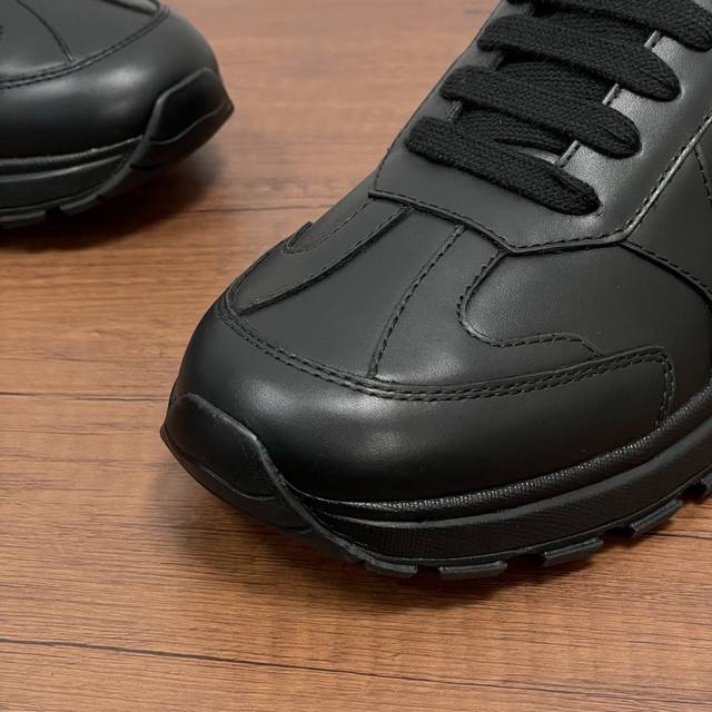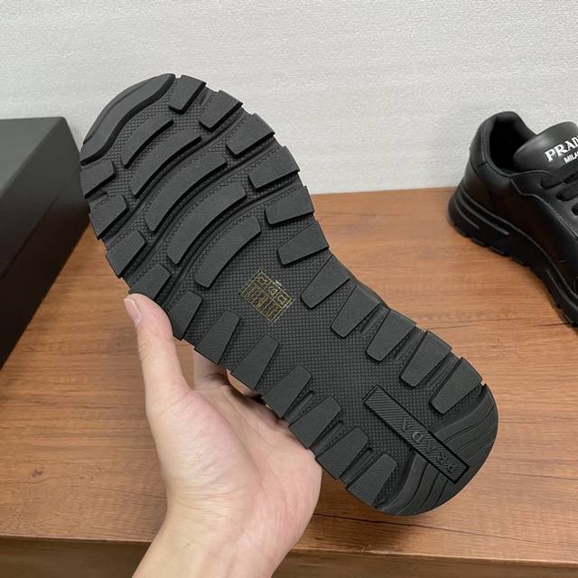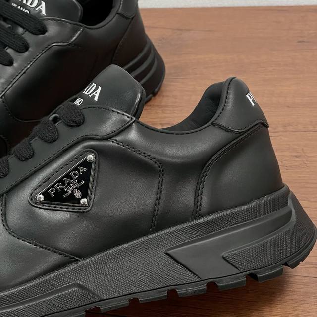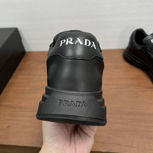 Prada Prax Men's Casual Sneakers (Ddd) These Prax sneakers blend style and comfort, with a unique athletic design defined by exquisite materials and details. Crafted from imported calfskin, they are fashionable, casual, and versatile. The lateral side features an enamel triangle logo, while the tongue and heel are adorned with a silkscreened logo. They are paired with a classic tire-tread anti-slip rubber outsole, a breathable fabric and leather lining, and a brand logo leather insole for a comfortable wearing experience. Comes with full original packaging! (Ddd) Sizes: 39-40-41-42-43-44 (Standard dress shoe size 38, 45). Custom sizes available, no returns or exchanges. (Ddd) Item Number: 2E3386 All Leather Black (Ddd)