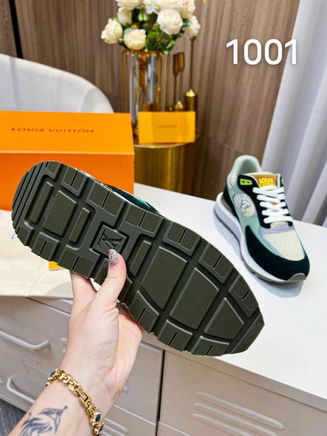 This Run A Way sneaker is crafted from imported mesh and suede. The interior features a breathable sneaker-specific mesh, a lightweight micro-sole, and a floral M Ono Gram design, reinterpreting the running shoe's inspiration. The side logo, like a dancing tail, comes to life. Available in men's sizes 38-46.