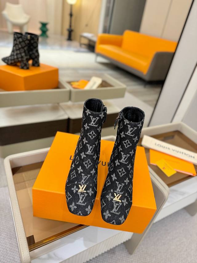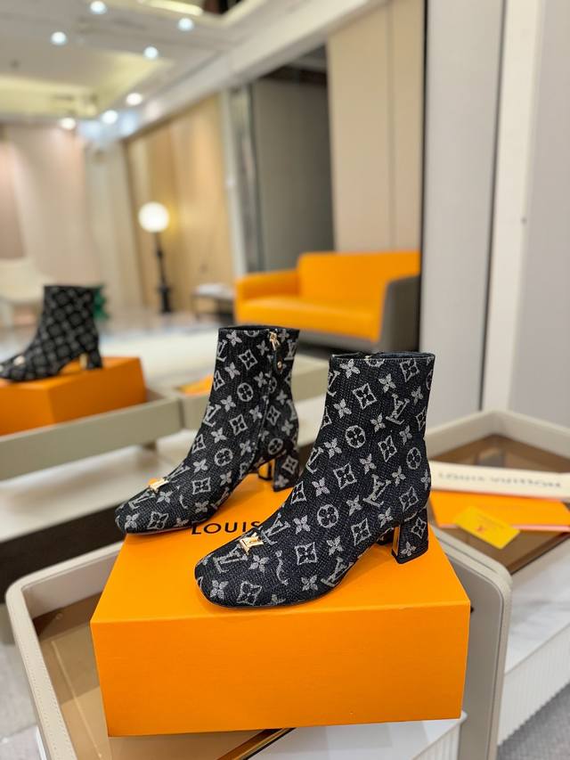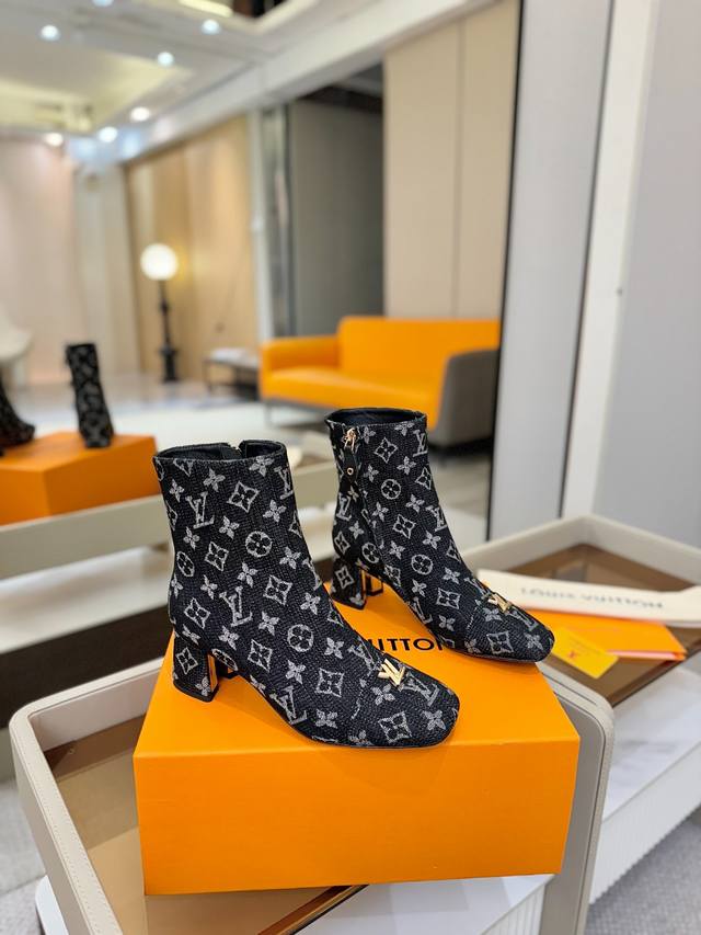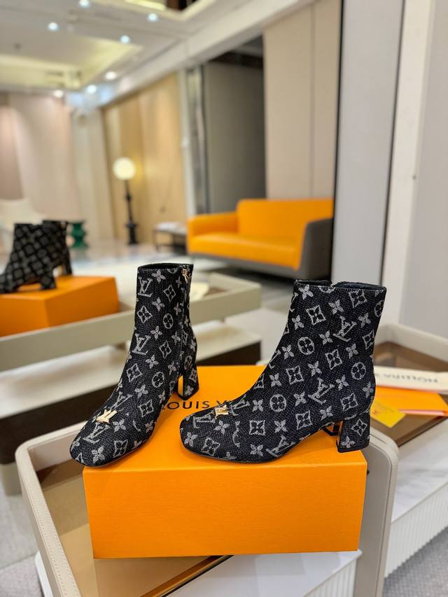 Price p: Ddd L brand autumn/winter runway 6-inch ankle boots, official website series, synchronized updates, perfect last + small V buckle design, classic style, simple and elegant, comfortable to walk in, suitable for all body types, stylish and attractive on the feet, original molded last, perfect 1:1 shape, high-end quality, imported high-end fabric presents exquisite texture! Ddd Fabric: Imported calfskin lychee pattern monogram denim Ddd Lining: High-quality soft sheepskin lining Ddd Insole: Imported goatskin Ddd Custom-made A-grade high-density private mold outsole, luxurious packaging! Ddd 5.5cm leather heel + electroplated design Ddd Sizes: 35-40, 34, 40, 41 Custom orders are non-refundable Ddd