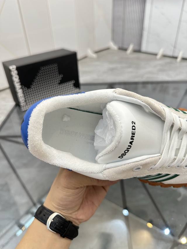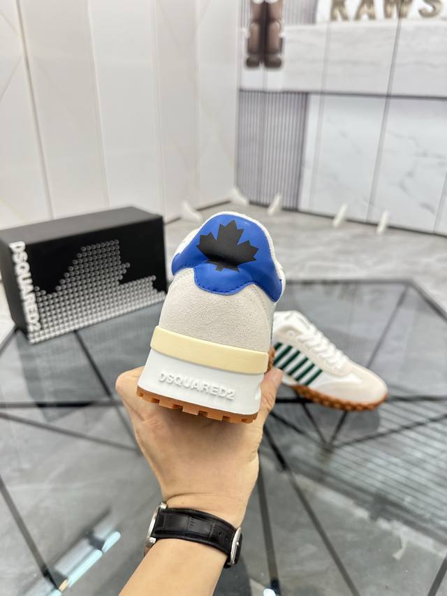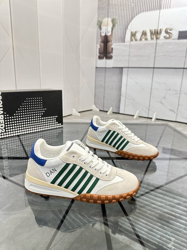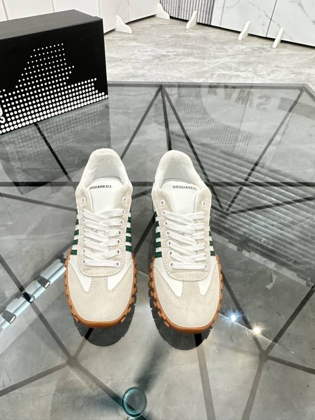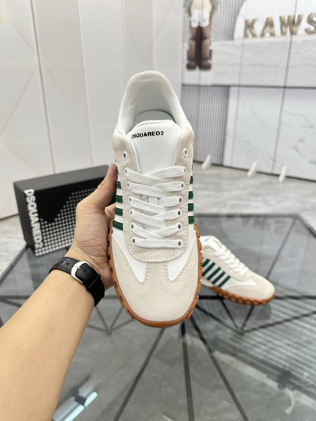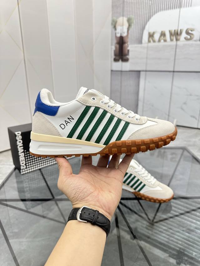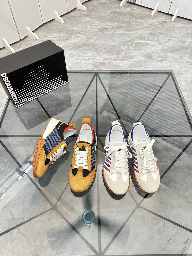 Price: P Product Brand: Dsquard D2 Power* Low-top Casual Shoes True to Size: 38-45, Size 46 available by custom order. Product Materials: Imported cowhide upper with suede trim, sheepskin lining, original outsole. Product Number: 803