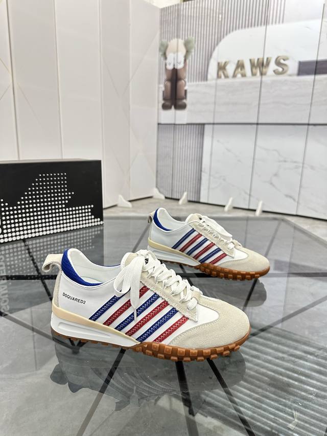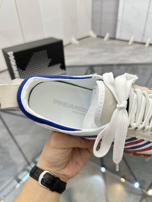 Price: P Product Brand: Dsquard D2 Power* Low-top Casual Shoes True to Size: 38-45, Size 46 available by custom order. Product Materials: Imported cowhide upper with suede trim, sheepskin lining, original outsole. Product Number: 803