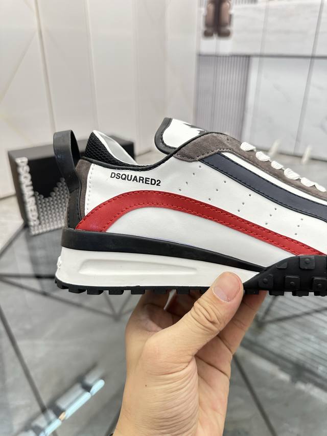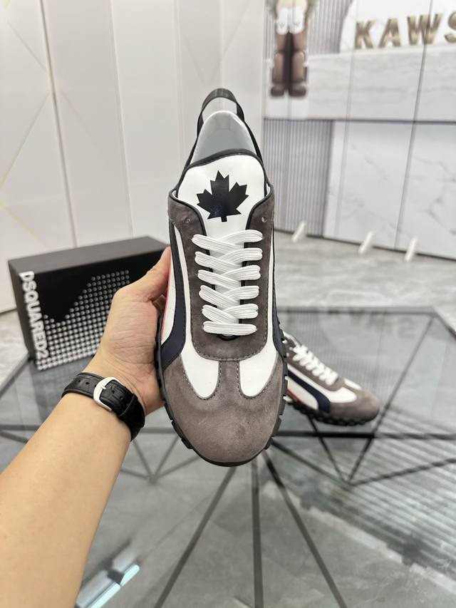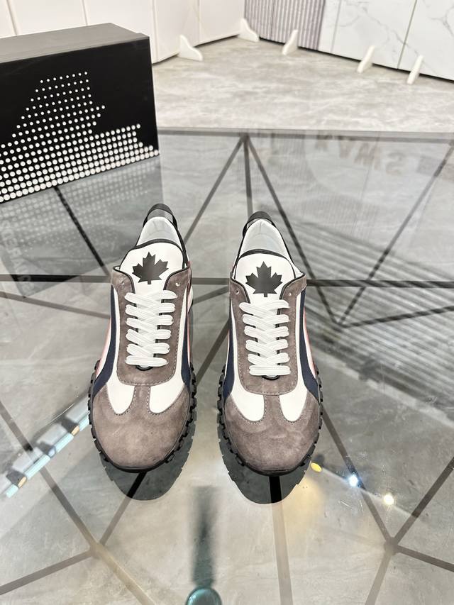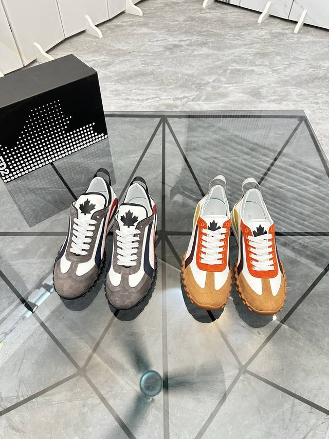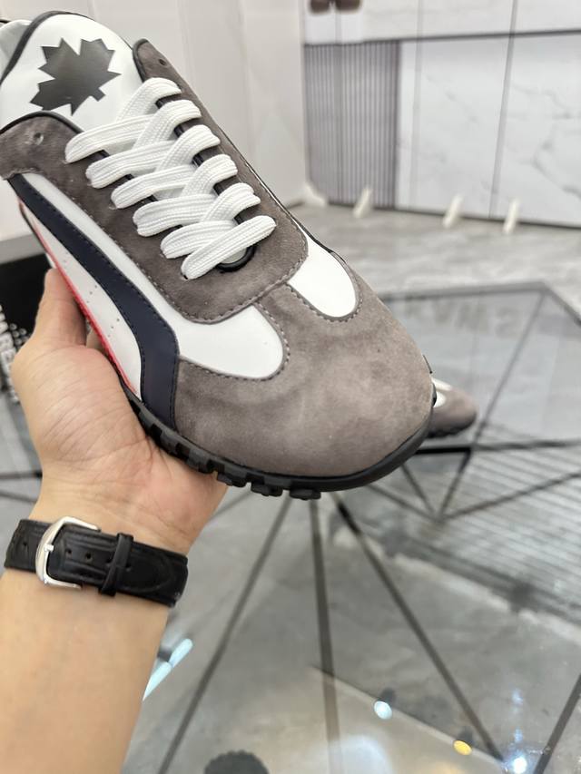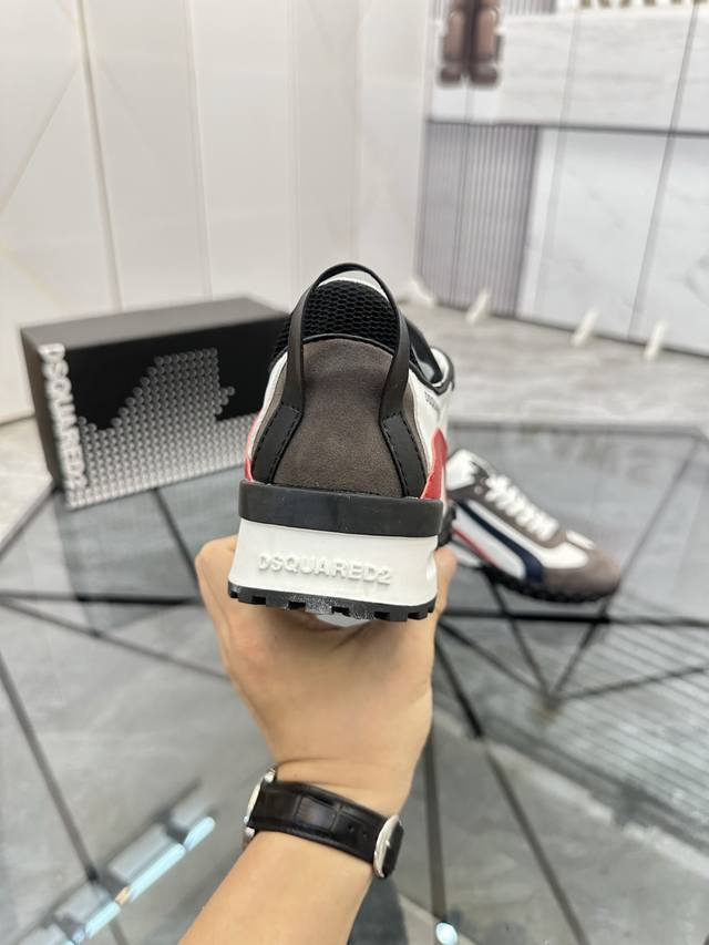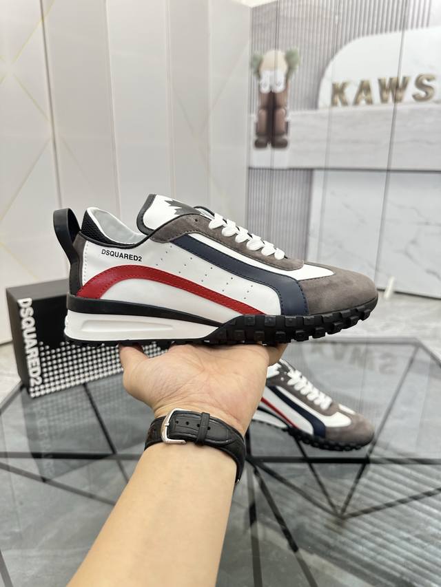 Price: P Product Brand: Dsquard D2 Power* Low-top Casual Shoes True to Size: 38-45, Size 46 available by custom order. Product Materials: Imported cowhide upper with suede trim, sheepskin lining, original outsole. Product Number: 803