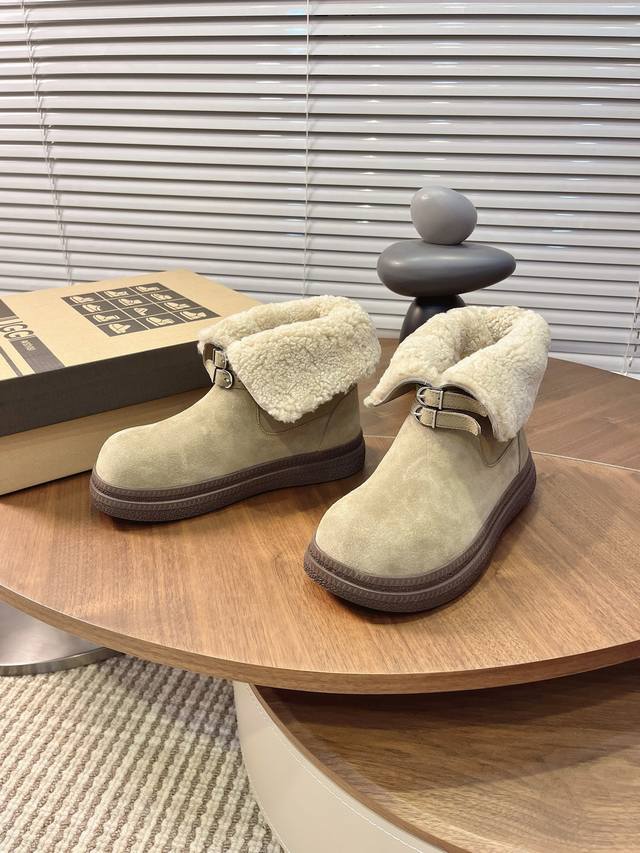 : High-top boots, stand up for warmth and style, lower the shaft for a relaxed short boot look, two styles to switch between easily, cute and fluffy, relaxed style