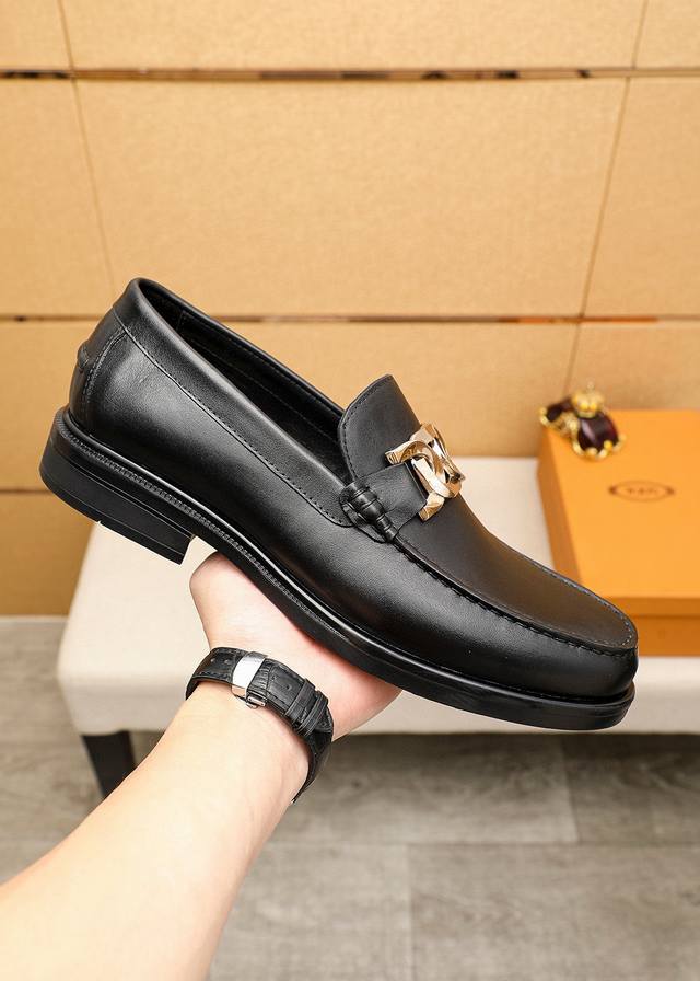 Product Brand: Tods Casual Leather Shoes True to Size: 39-44, 38, 45, 46 (Custom Made) Materials: Selected top-grain calfskin upper + luxurious hardware buckles, imported cowhide lining. Strong three-dimensional visual effect, rubber outsole. Colors: 6 colors available.