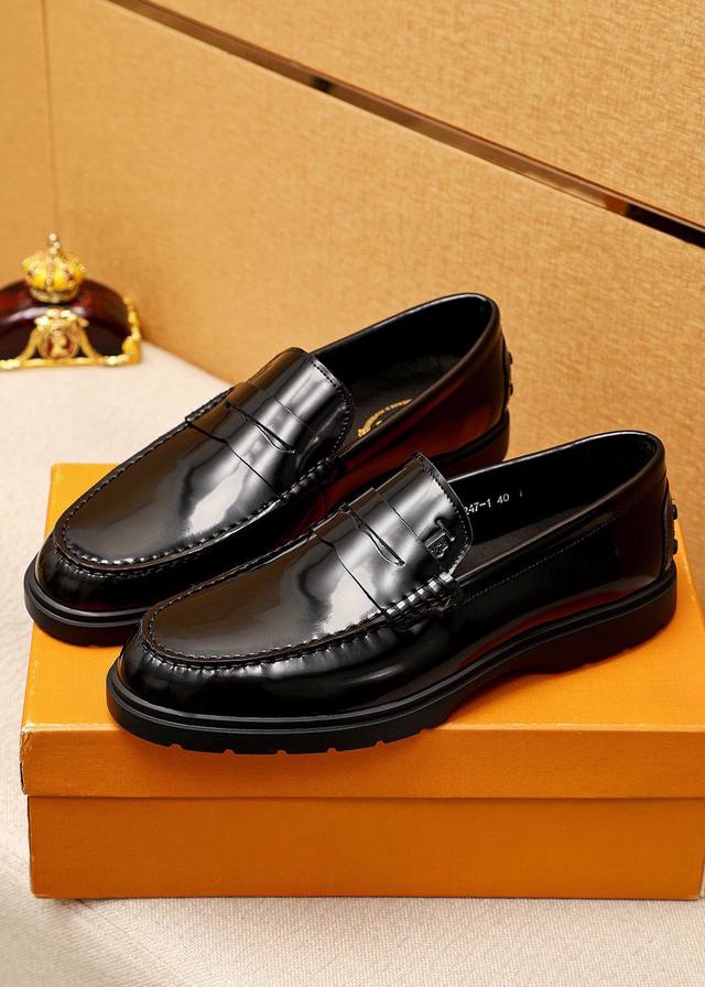 Product Trademark: Tods Casual Leather Shoes Sizes: 39-44, 38.45 (Custom Made) Materials: Selected top-grain split cowhide upper, imported cowhide lining. Strong three-dimensional visual effect, rubber outsole. Colors: 2 colors available.