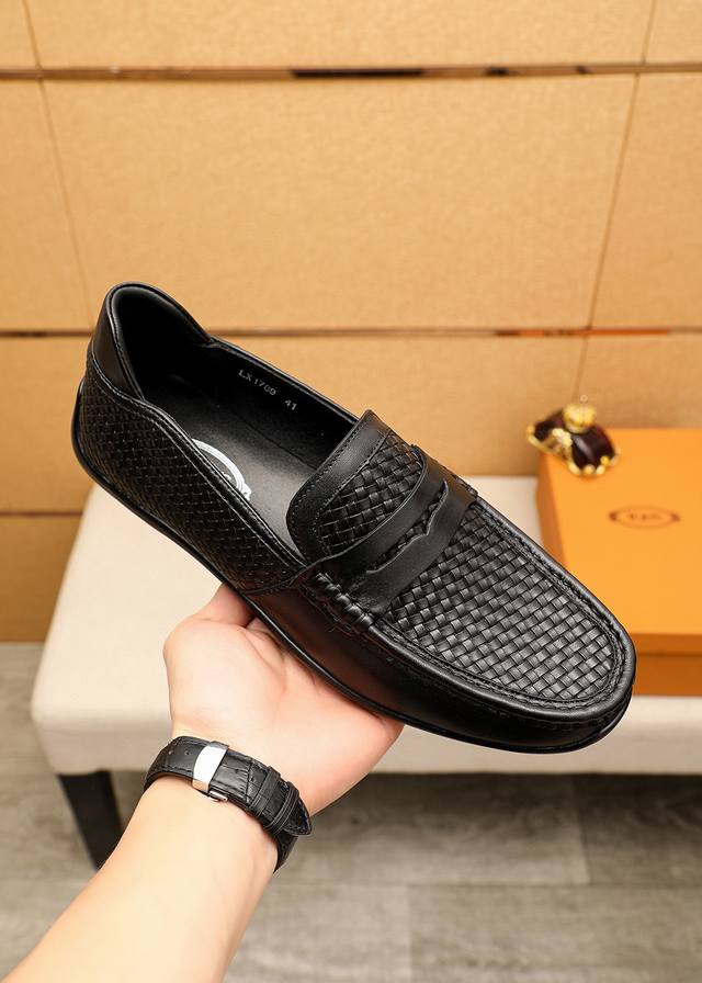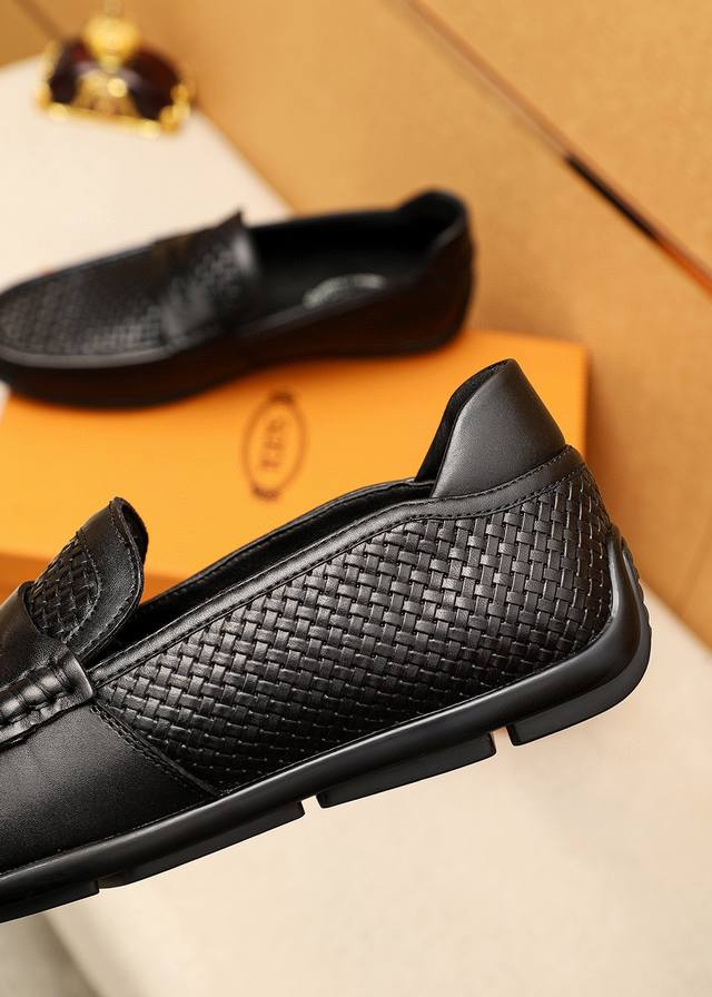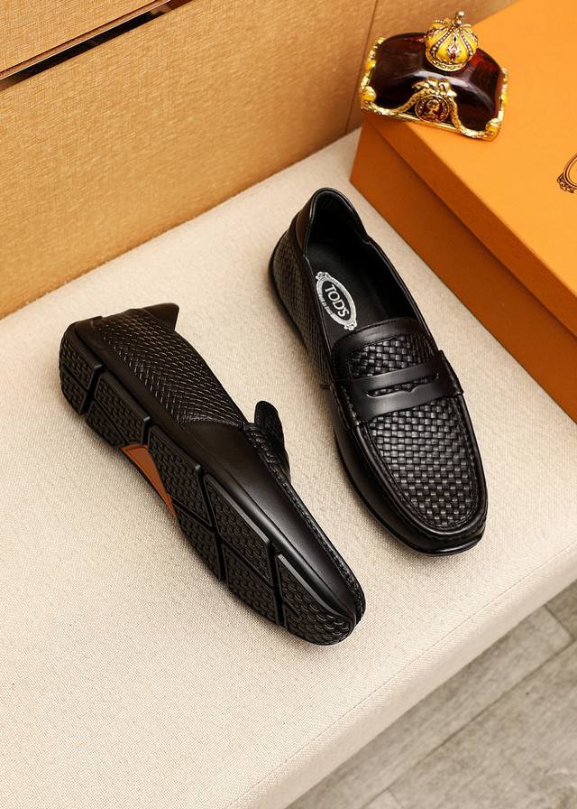 Product Trademark: Tods Loafers True to Size: 38-44, 45-46 (Custom Sizes Available) Materials: Selected top-grain woven cowhide upper, imported cowhide insole. Strong 3D visual effect, rubber outsole. Colors: 2 colors available.