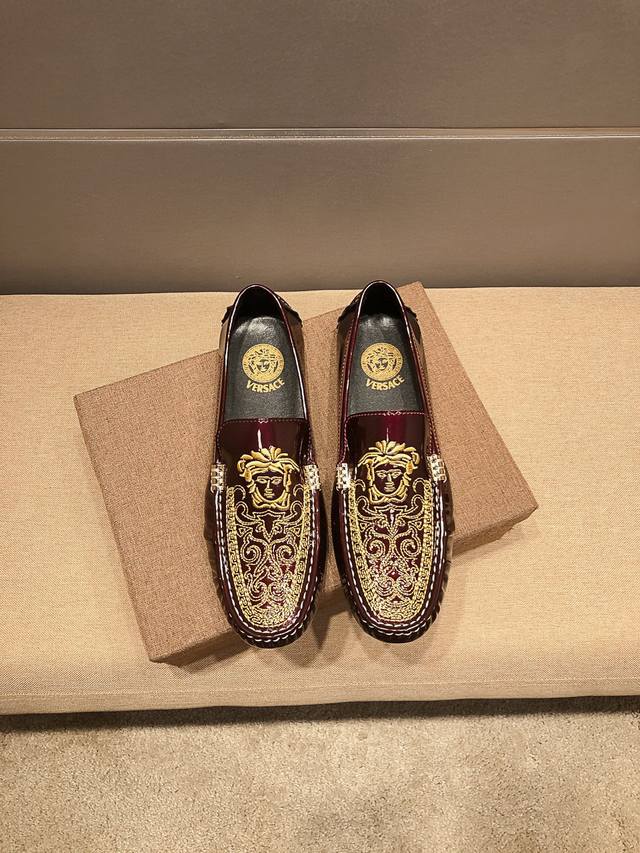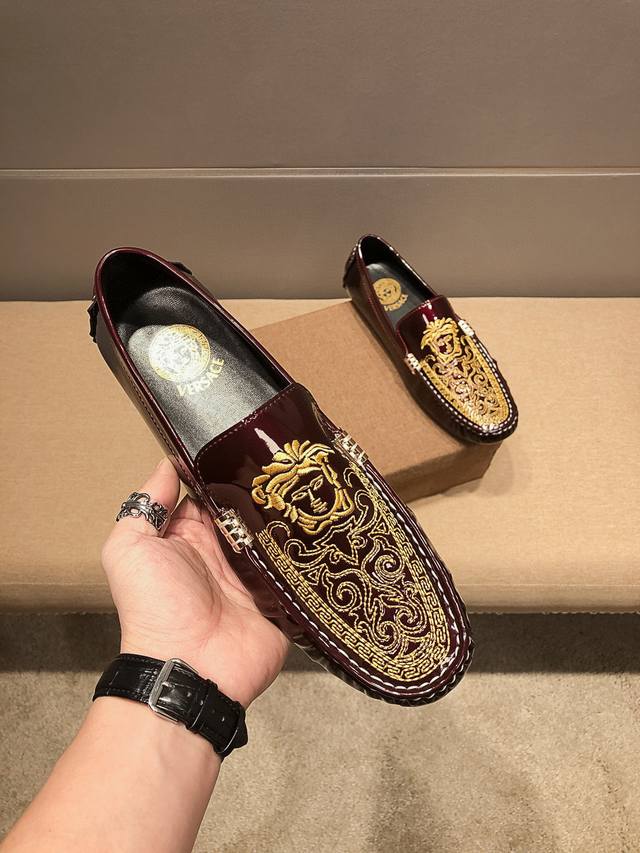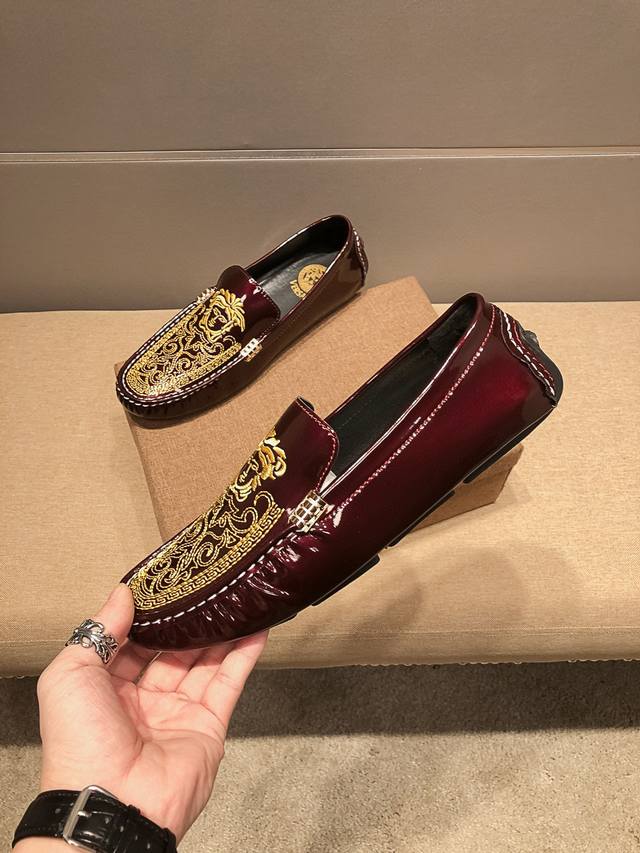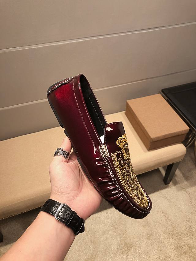 Real Price, Festive Red Verace Original, Upper Made of Top-Grain Italian Patent Leather with Sexy Medusa Head Embroidery, a Men's Favorite. Top-Grain Sweat-Absorbing Pigskin Lining, Original Imported Wear-Resistant Rubber Sole, Official Website Product, A Must-Have for Men, Crafted with Exquisite Workmanship. Comfortable to Wear. Refined and Elegant Design, Whether Focused at Work, Spending Leisure Time with Family, or Experiencing a Refined Lifestyle in the City or Countryside, This Series Can Showcase True Masculine Charm. [Striving] Standard Sizes 37-45 DDD