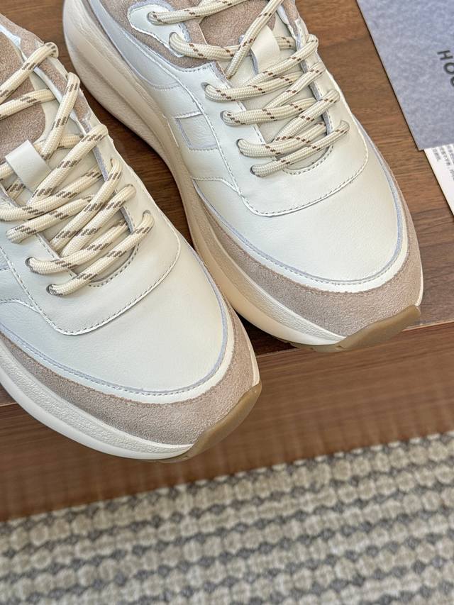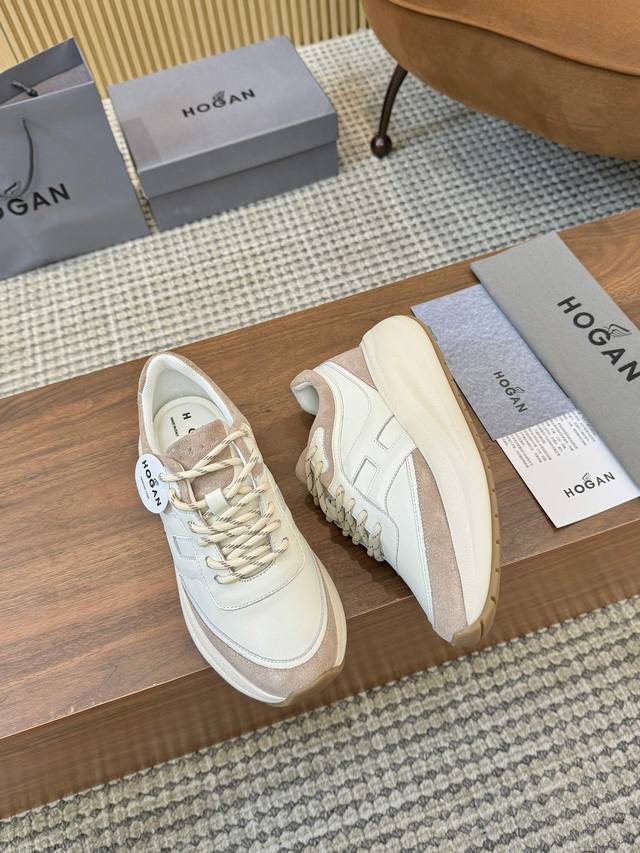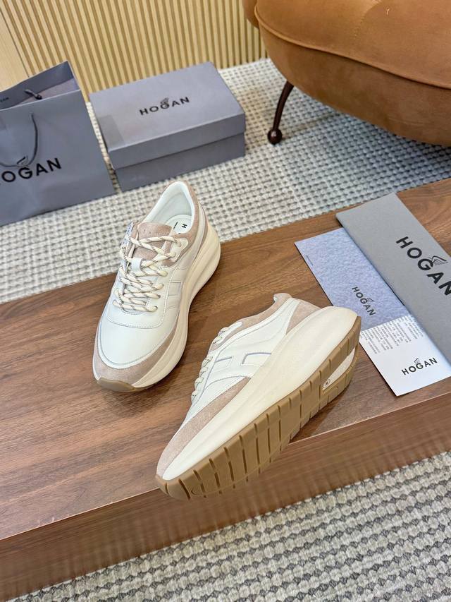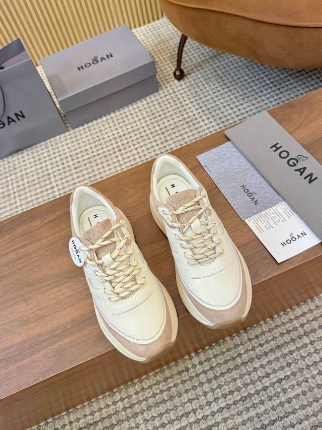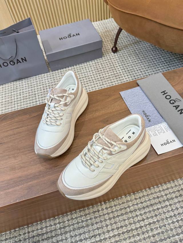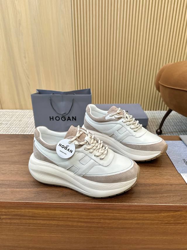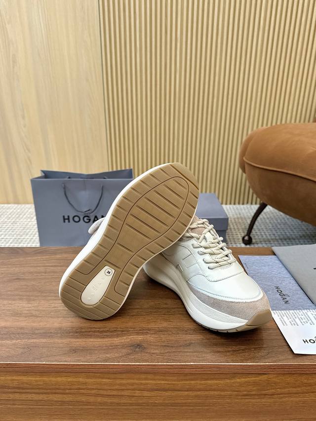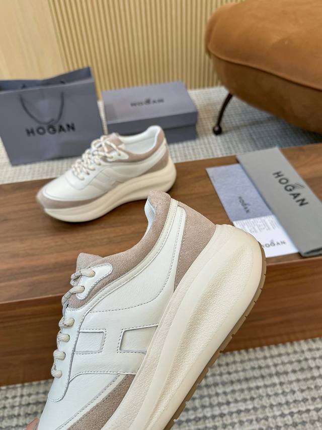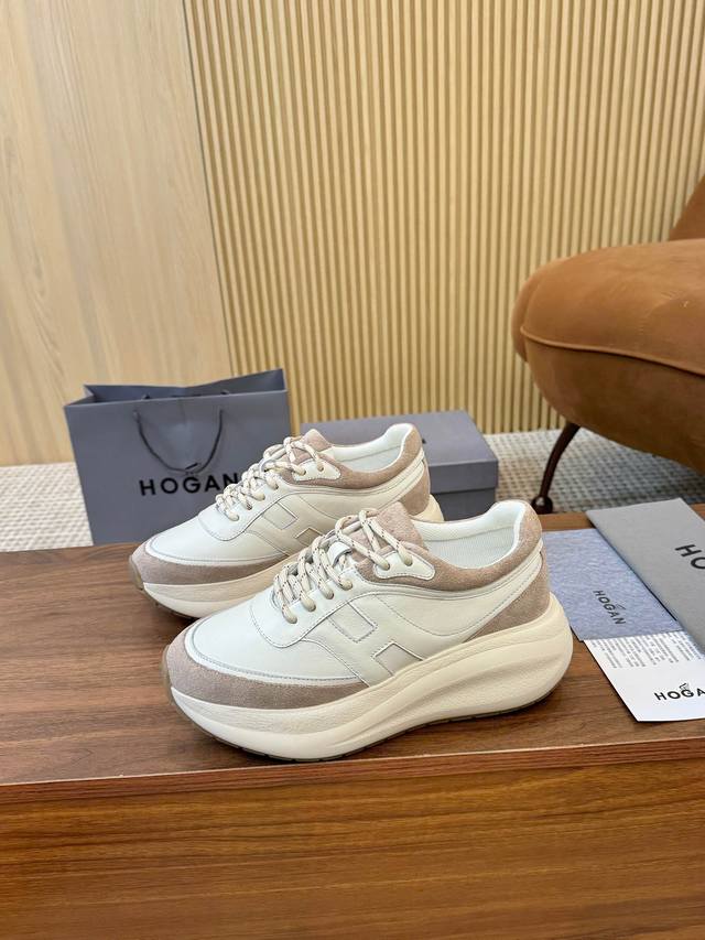 Real price for the new Hogan Chunky H696 series, exclusively 1:1 molded. The Hogan Chunky H696 series features exquisite design, sparkling with imagination and showcasing a trendy style. The chunky sole provides comfort and a slender, upright silhouette, reflecting a new everyday look and inspiring multifaceted creativity. This athletic casual shoe is made of Nappa leather and suede, featuring a dynamic new design with rounded lines on the upper and a large "H" logo on the side. The craftsmanship is exquisite and unique, and the memory foam insole is lightweight and comfortable. Sizes 35-40. [Extremely popular, reposting this image will definitely boost sales!]