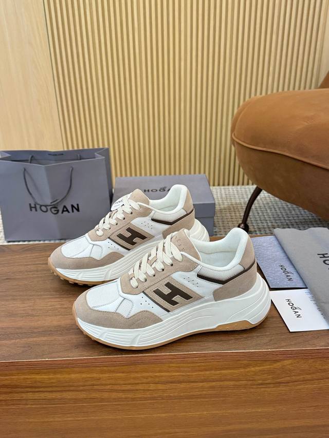 Real Price Hogan 2025 New Couple Style H-Stripes Series Couple Thick-Soled Dad Shoes, Flying Boat Shoes, Casual Sports Shoes. Top-tier original version, purchased and developed. This H-Stripes series sports shoe features a contrasting color, high-elasticity, thick sole, and height-increasing design, giving the shoe a fresh and energetic feel, allowing you to express your style and grab attention, setting a new trend in modern urban fashion. Material: Original custom imported cowhide leather. Lining: Original imported breathable mesh. Sole: Exclusive molded ultra-lightweight high-elastic material. Sole thickness: Approximately 4.5cm. Sizes: Women's 36-44, 35 and 45 are custom-made, no returns or exchanges.