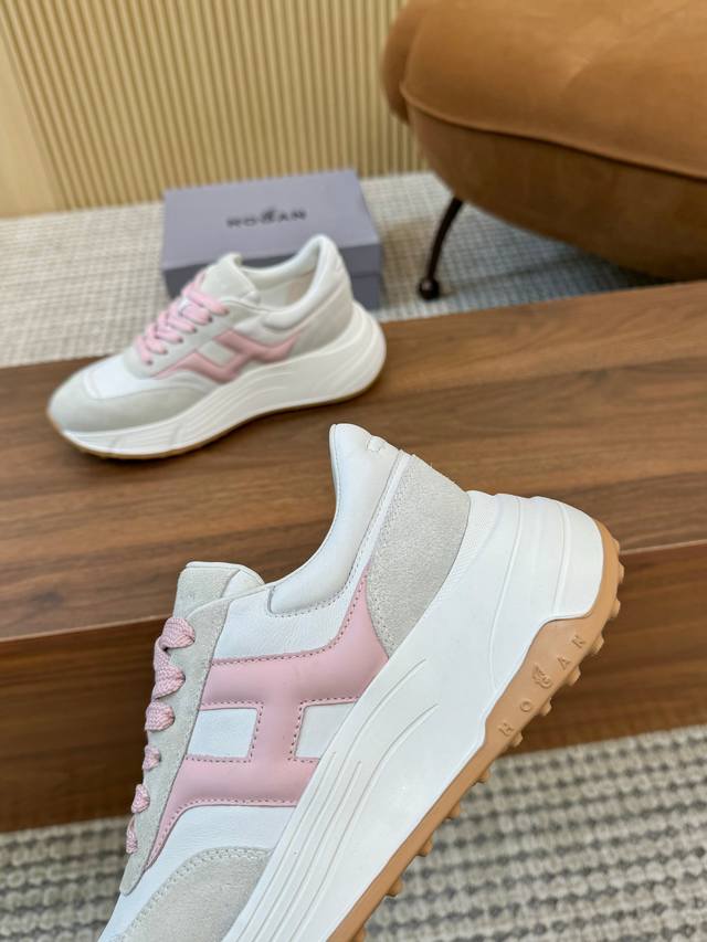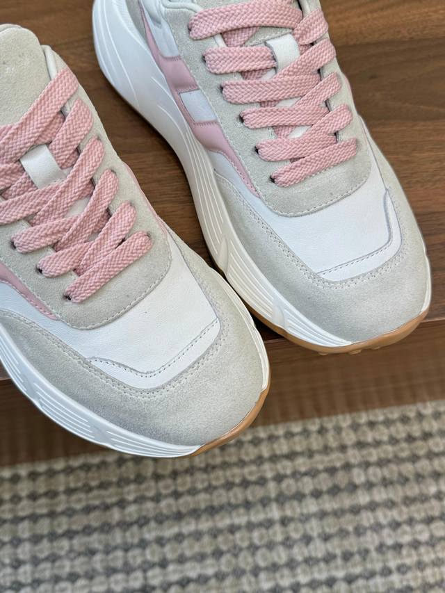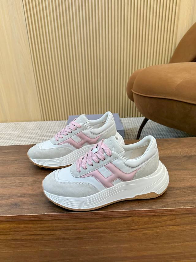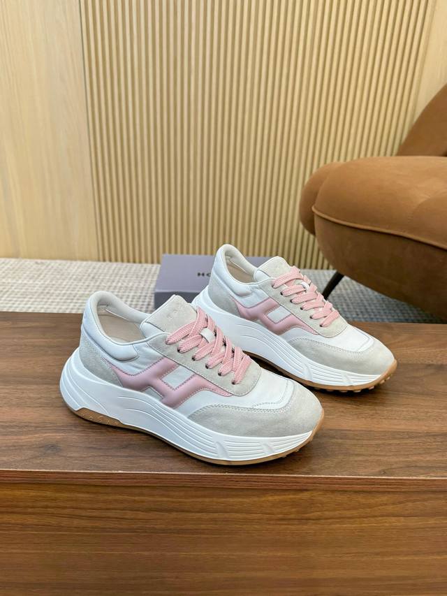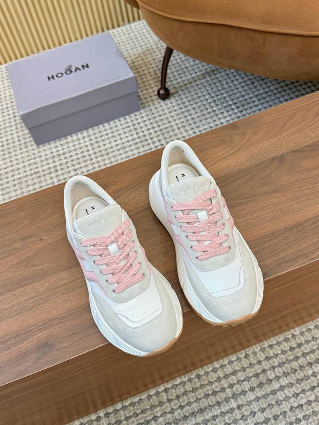 Real Price Hogan 2025 New H-Stripes Series Couple Chunky Platform Dad Shoes, Casual Sports Shoes. Top-tier original version, purchased and developed. This H-Stripes series sneaker features a contrasting color high-elasticity thick sole design, giving the shoe a fresh and energetic feel, allowing you to strut your stuff and grab attention, setting a new trend in modern urban style. Material: Original custom imported cowhide. Lining: Original cowhide lining. Sole: Exclusive molded ultra-lightweight high-elastic material. Sole thickness: Approx. 4.5cm. Sizes: Women's 36-44, 35 and 45 are custom-made, no returns or exchanges.