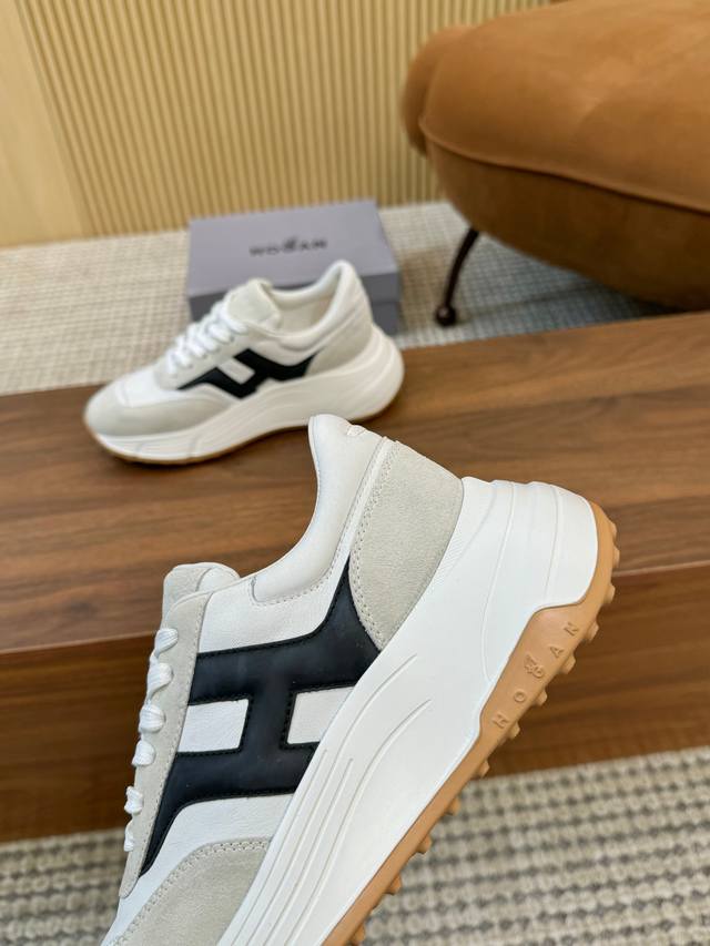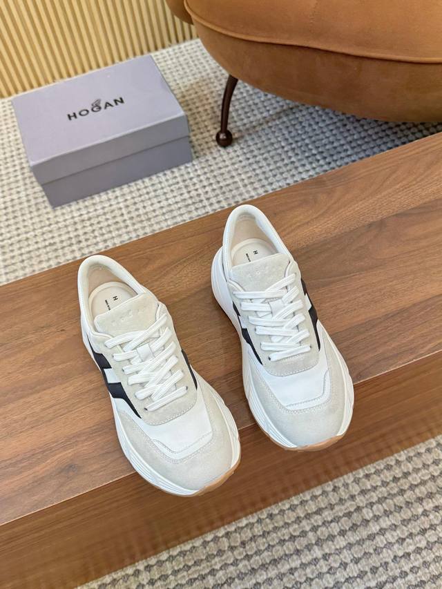 Real Price Hogan 2025 New H-Stripes Series Couple Chunky Platform Dad Shoes, Casual Sports Shoes. Top-tier original version, purchased and developed. This H-Stripes series sneaker features a contrasting color, high-elasticity, thick sole, and height-increasing design, giving the shoe a fresh and energetic feel, allowing you to express your style and grab attention, setting a new trend in modern urban fashion. Material: Original custom imported cowhide. Lining: Original cowhide lining. Sole: Exclusive molded ultra-lightweight high-elastic material. Sole thickness: Approximately 4.5cm. Sizes: Women's 36-44, 35 and 45 are custom-made, no returns or exchanges.
