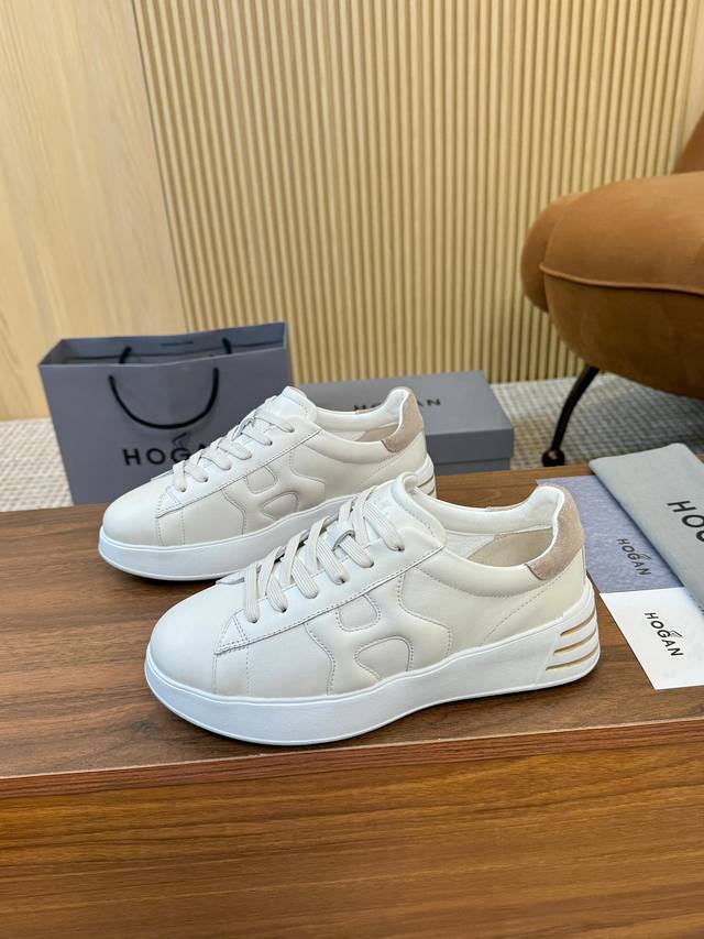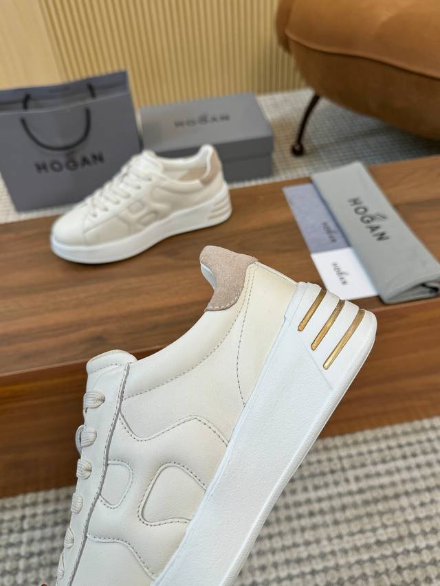 Real Price. Hogan classic sneakers blend elegance and modernity, featuring a rich color palette and the iconic Hogan logo on the side. These sneakers boast a slim cut, subtle stitching for added texture, and a thin strap for a classic sneaker style. A versatile piece for every wardrobe, a must-have for every woman. Sizes 35-40, 41 available customizable. Guaranteed to sell out quickly! (Image shared) DDD