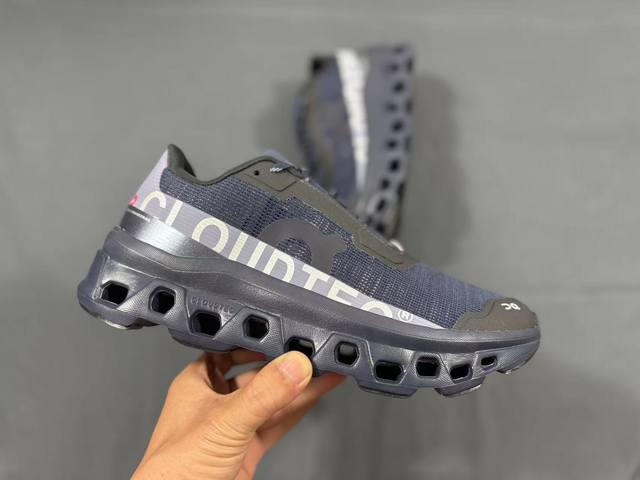 The brand new On Cloudmonster "Little Monster" carbon plate shoe features a breathable woven upper, a large hollowed-out Cloudtec patented technology midsole, and a Cloudmonster outsole with the brand's largest Cloud module to date. This allows for greater cushioning by deforming upon landing, reducing impact. Simultaneously, a Speedboard plate embedded in the midsole, similar to the carbon plate in racing shoes, provides stronger feedback and rebound. The rocking chair-shaped design in the forefoot provides a powerful forward propulsion with every step. The multi-layered, durable outsole offers enhanced rebound, giving a relatively gentle and soft feel. A highly recommended running shoe!