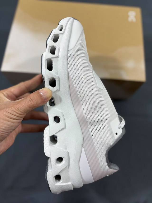 The brand new On Cloudmonster "Little Monster" carbon plate shoe features a breathable woven upper, a large hollowed-out Cloudtec patented technology midsole, and a Cloudmonster outsole with the brand's largest Cloud module to date. This allows for greater cushioning by deforming upon landing, reducing impact. Simultaneously, a Speedboard plate embedded in the midsole, similar to the carbon plate in racing shoes, provides stronger feedback and rebound. The rocking chair-shaped design in the forefoot provides a powerful forward propulsion with every step. The multi-layered, durable outsole offers enhanced rebound, giving a relatively gentle and soft feel. A highly recommended running shoe!