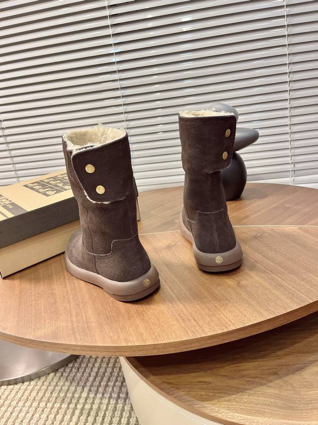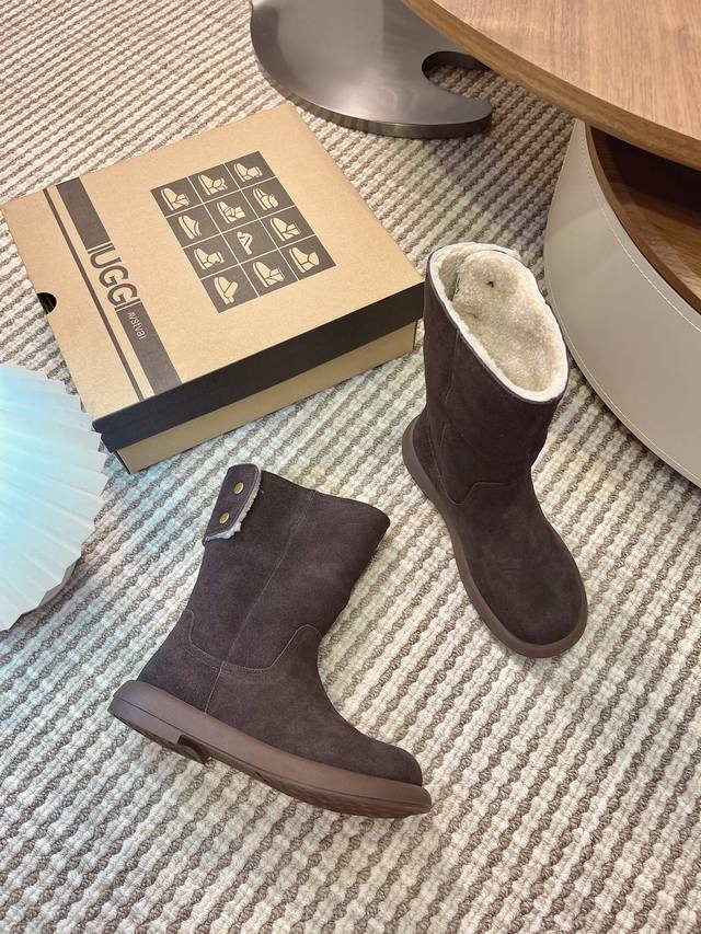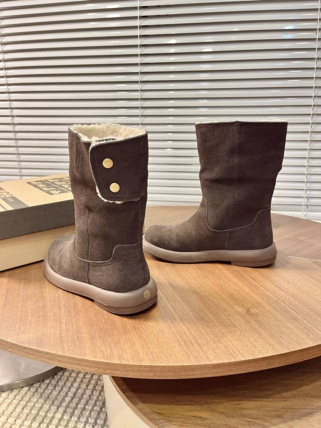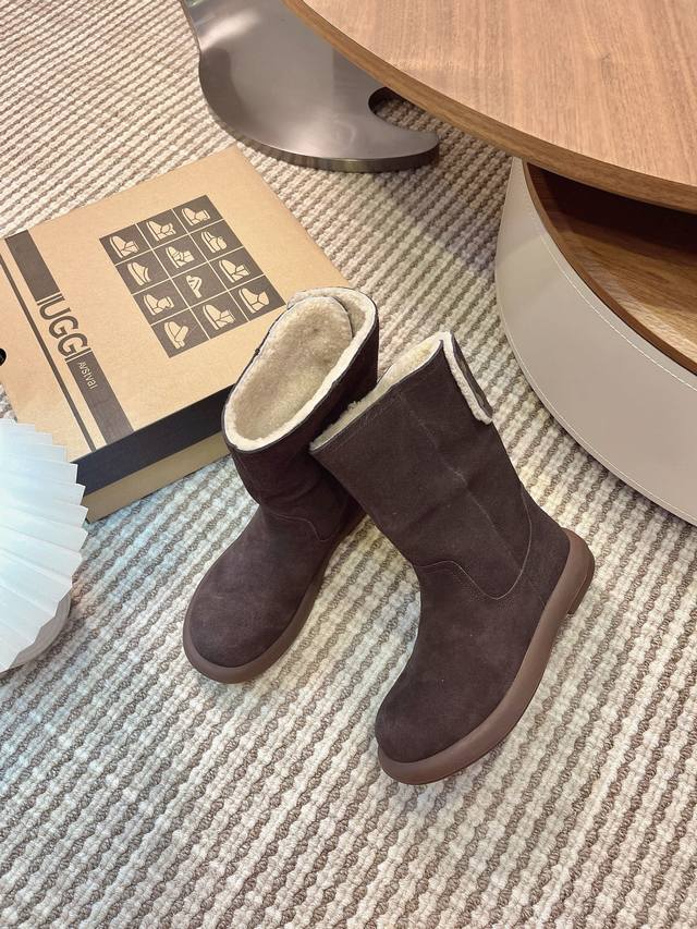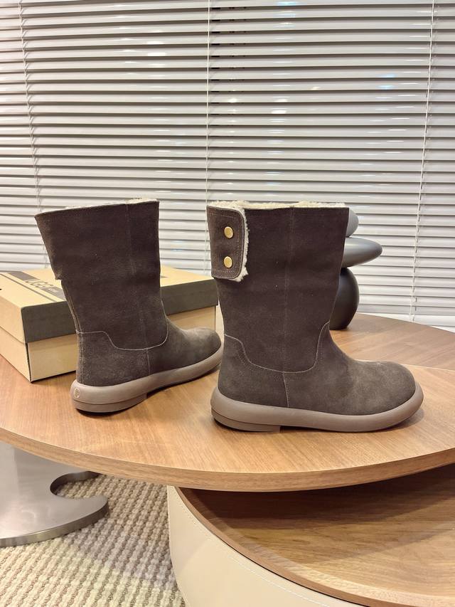 : Cowhide upper, sheepskin lining, high-top, warm and stylish