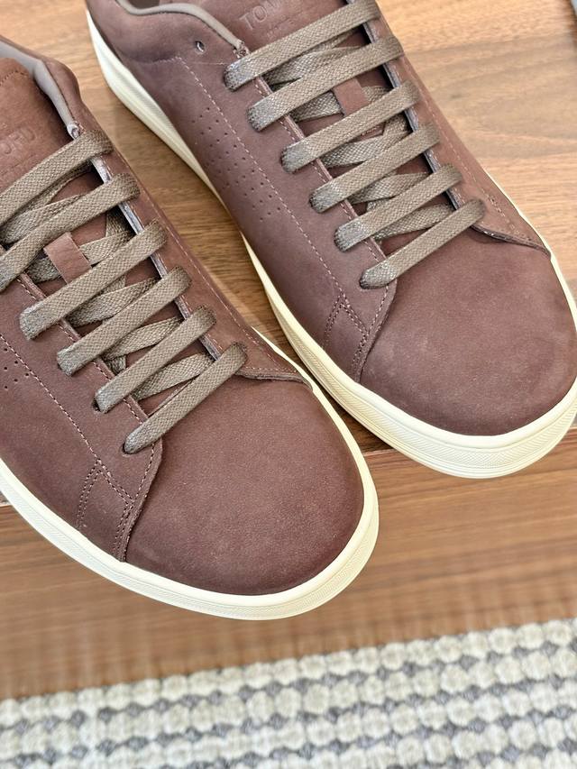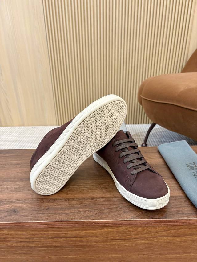 Real Price. Tom Ford's classic style has been updated! A timeless Tom Ford men's shoe in a second-dyed suede, low-top, lace-up, flat, round-toe design. Features a rubber outsole and leather lining, offering comfortable wear, a simple yet stylish look, and a must-have classic shoe in every man's wardrobe. You deserve it. Share this image for a guaranteed hit! Sizes 39-44, 38, 45, and 46 are available for customization. DDD