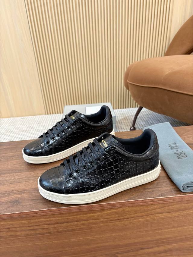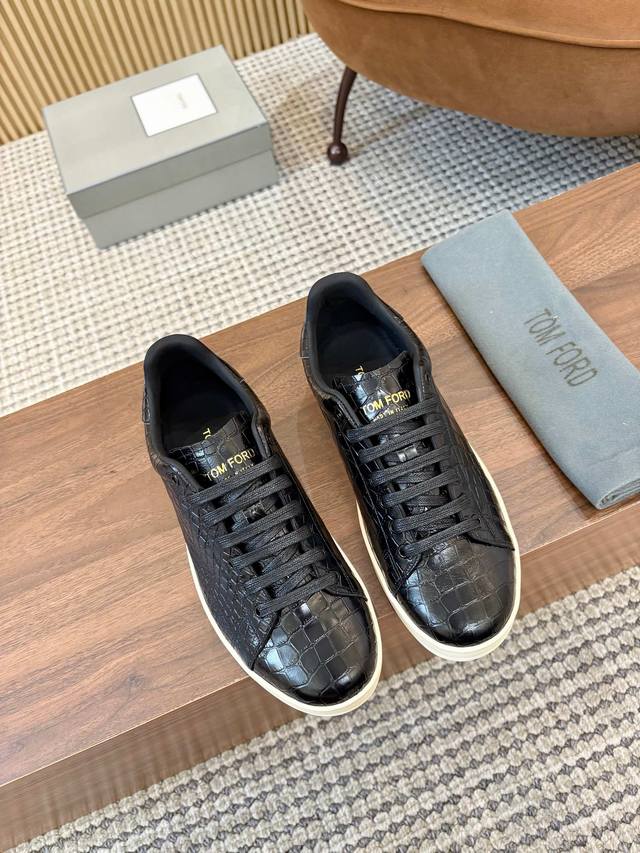 Real Price. Tom Ford's classic style is back! A timeless Tom Ford men's faux crocodile leather, low-top, lace-up, flat, round-toe shoe with a rubber outsole and leather lining. Comfortable, simple, and stylish, it's a must-have classic shoe in every man's wardrobe. You deserve it. (Image repost guaranteed to be a bestseller. Sizes 39-44, 38, 45, 46 are available for customization.) DDD